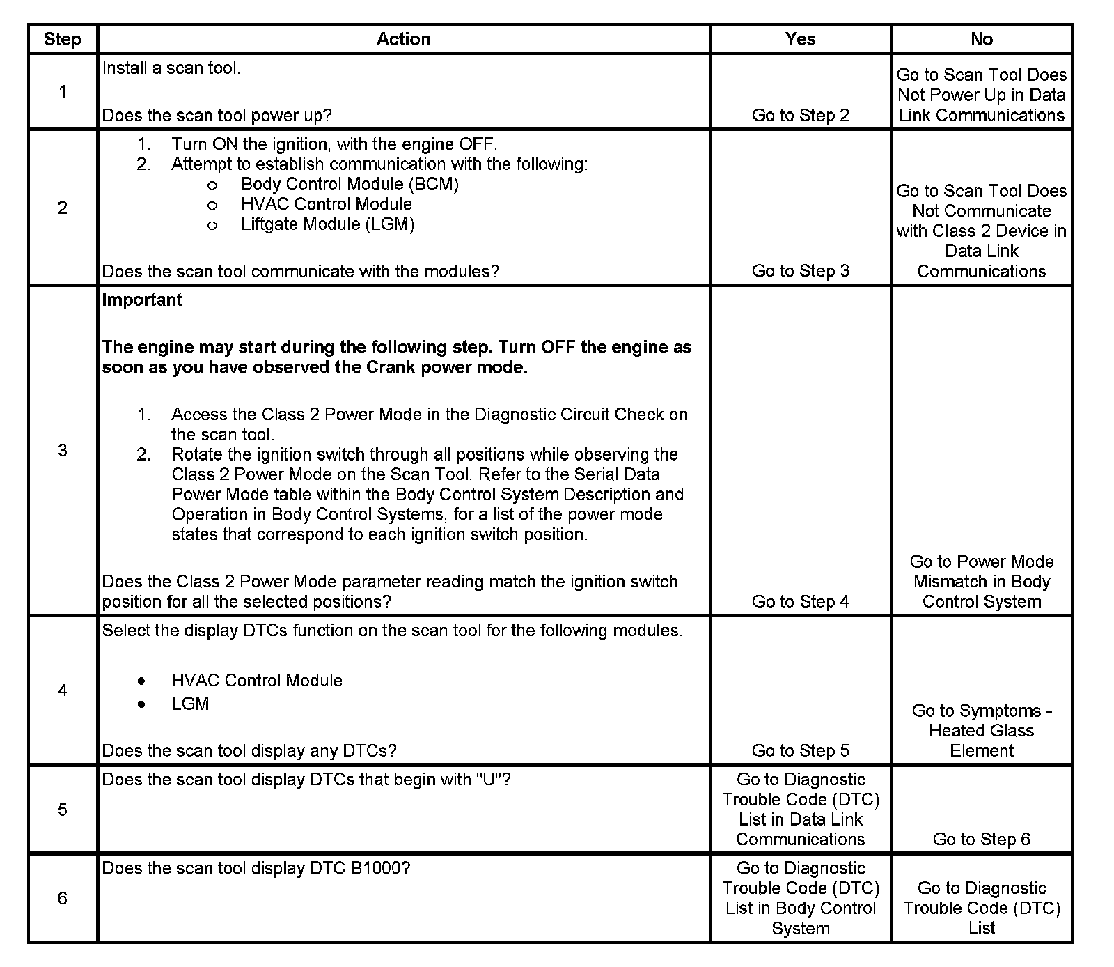 2. Lack of communication may be due to a partial malfunction of the class 2 serial data circuit. The specified procedure will determine the particular condition.