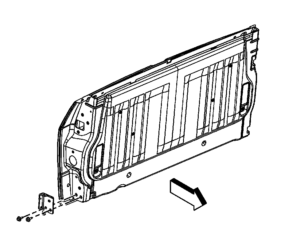 2. Install the bolts retaining the hinge to the end gate.