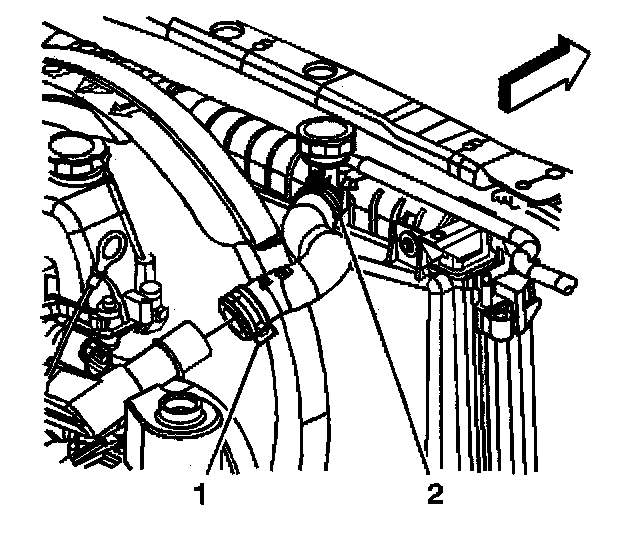 11. Reposition the outlet radiator hose clamp (1) using J 38185.