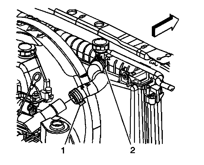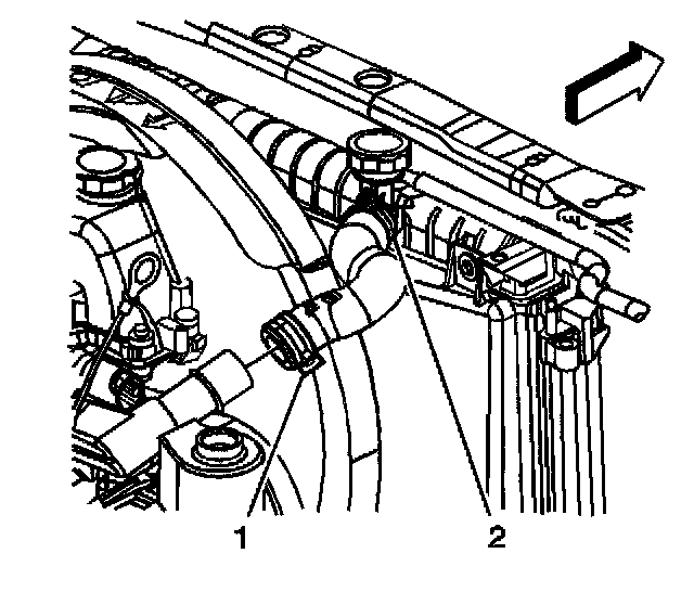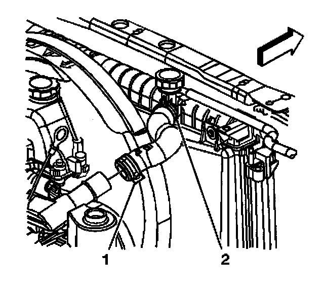 7. Reposition the inlet radiator hose clamp (1) using J 38185.