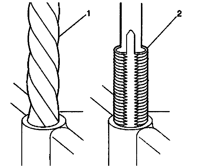 1. Drill out the threads of the damaged hole (1).