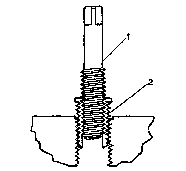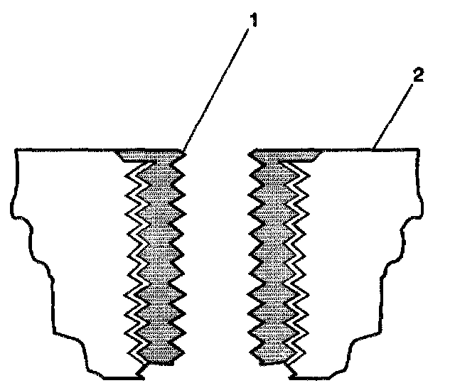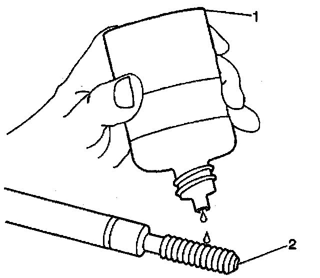 11. Apply threadlock LOCTITE 277, J 42385-109 (1), or equivalent to the insert OD threads (2).