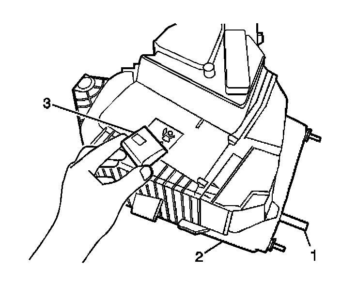 2. Disconnect the electrical connector from the blower motor control processor-auxiliary (3).
