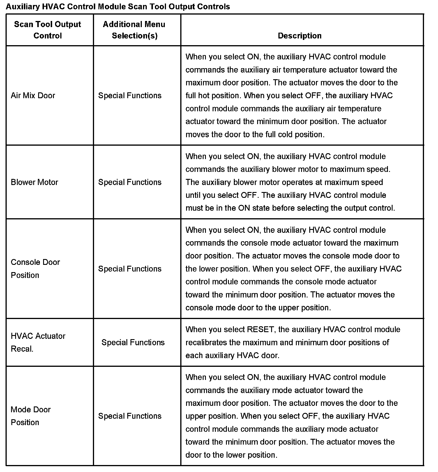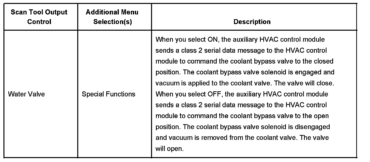 Scan Tool Output Controls - Auxiliary HVAC Control Module