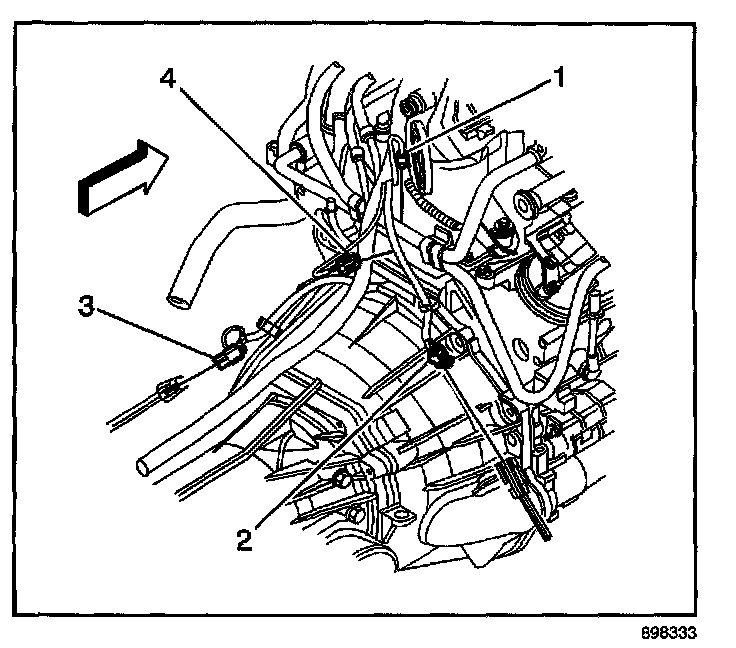 4. Disconnect the heated oxygen sensor (HO2S) electrical connector (3).
