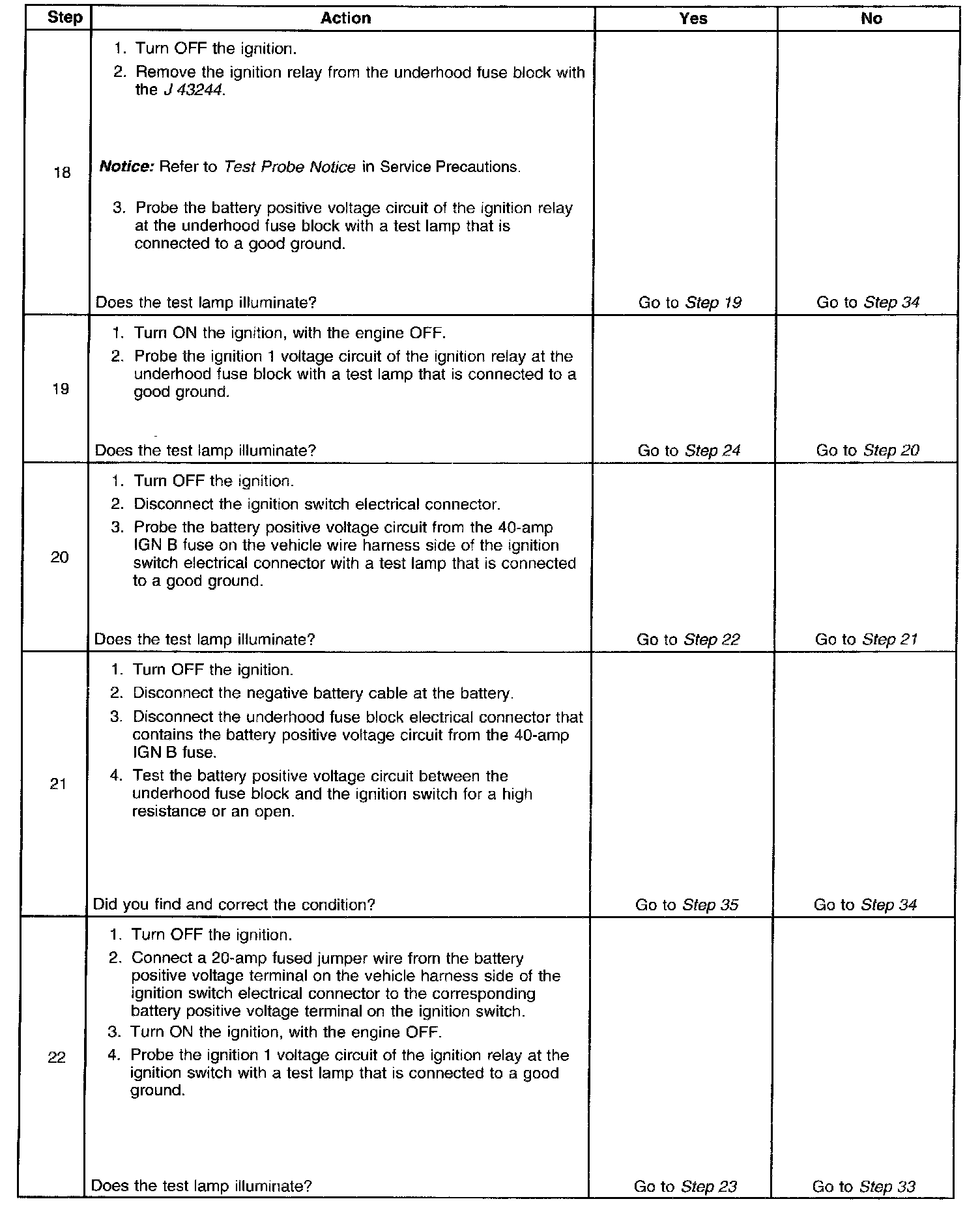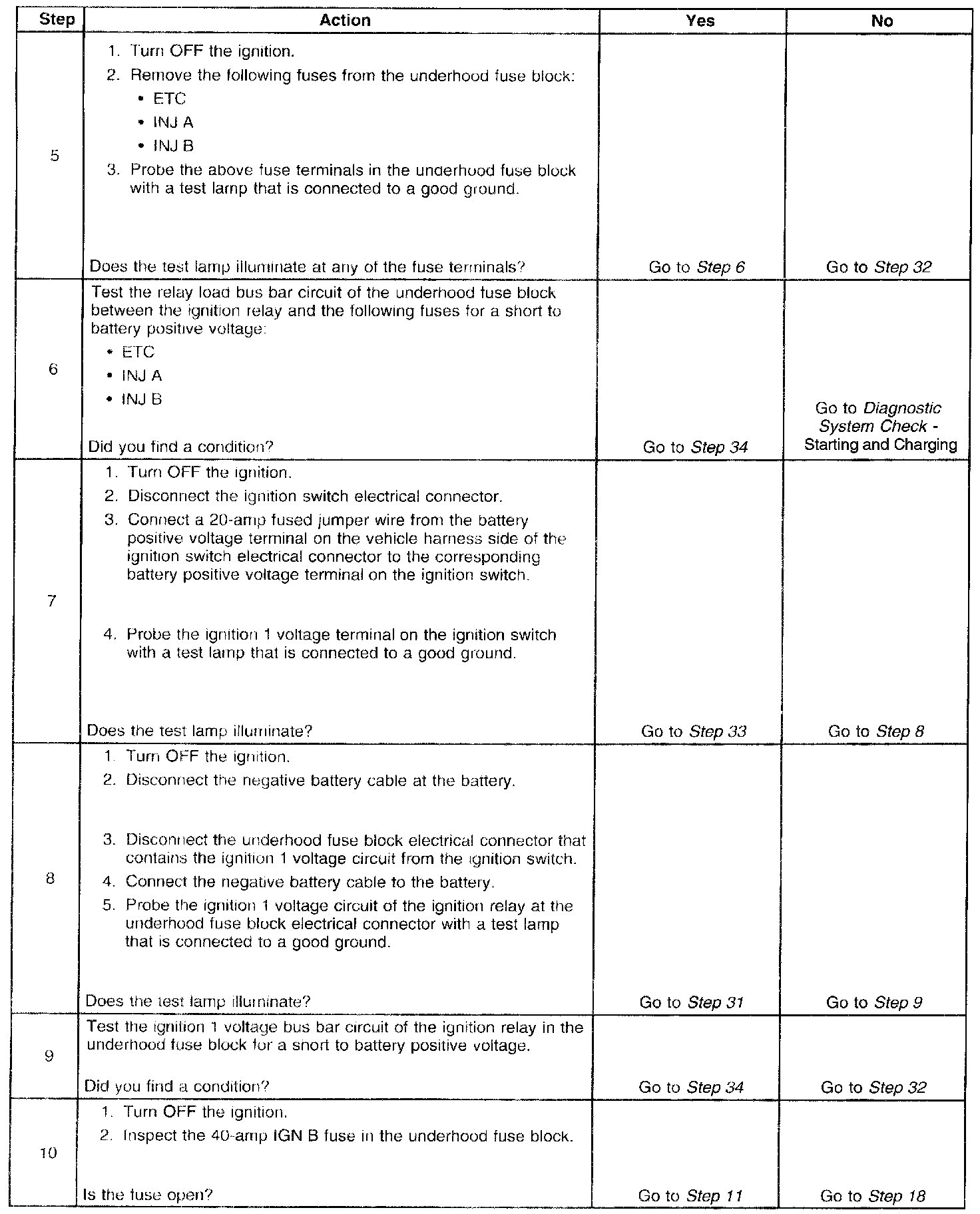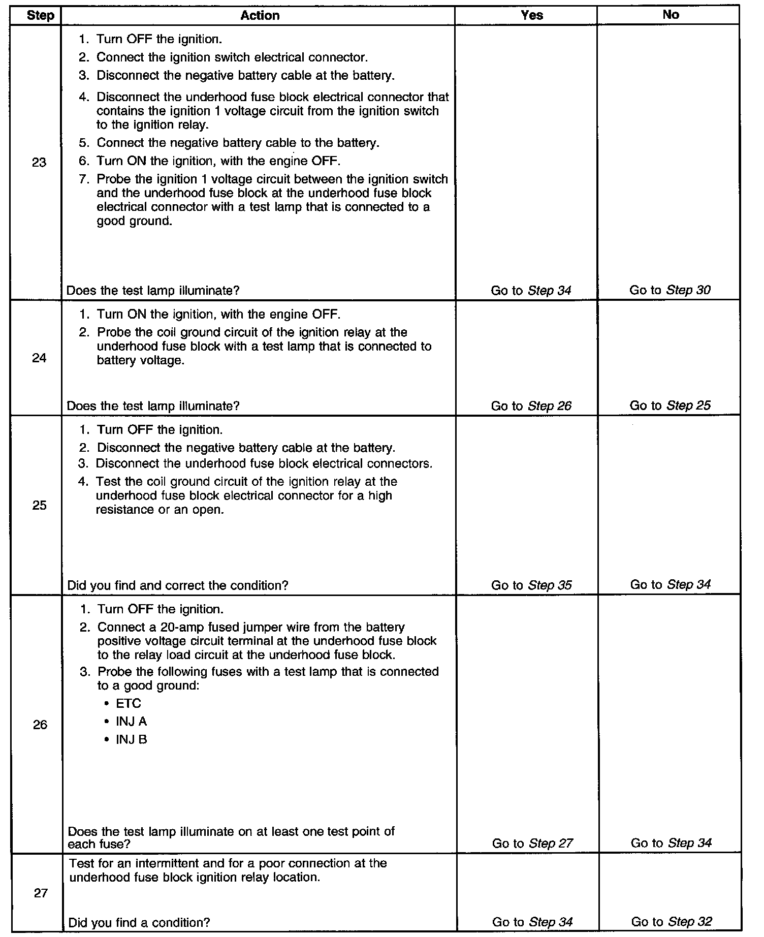 The ignition relay table assumes that the vehicle battery is fully charged. Refer to Battery Inspection/Test (Non-HP2) in Starting and Charging. Battery Inspection/Test