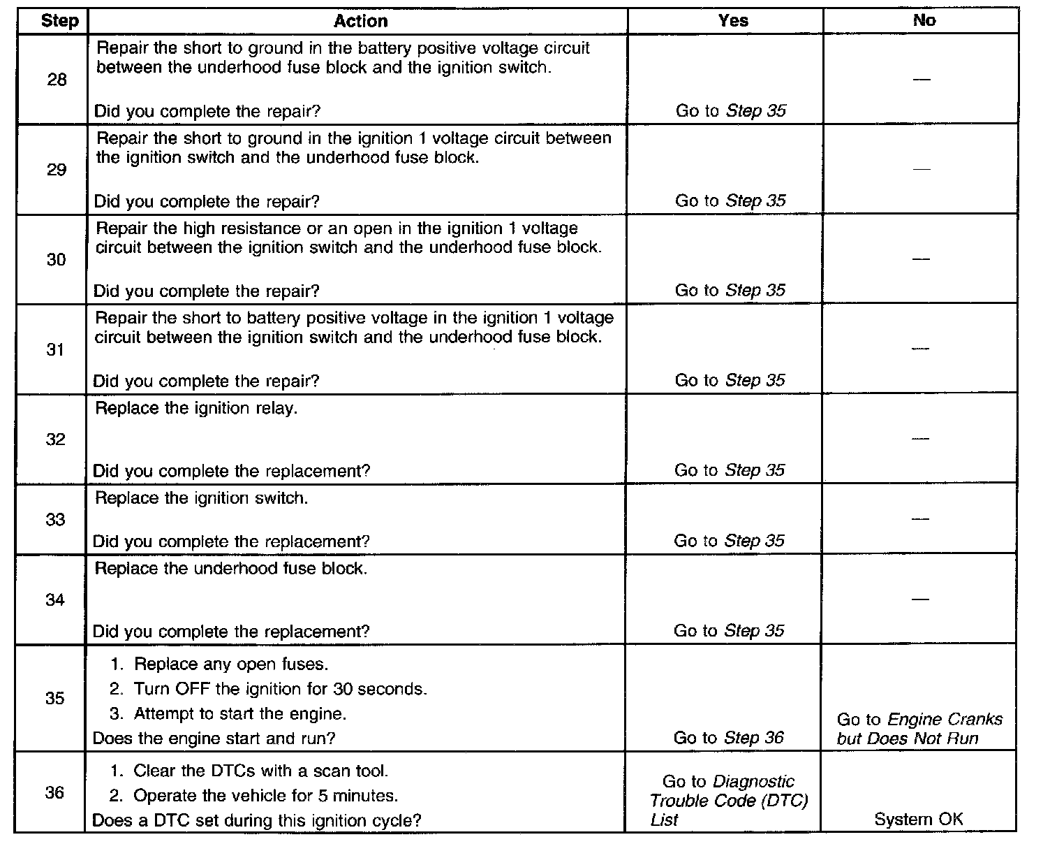 If the ignition relay fails to close, the engine will crank, but will not run. The class 2 communications will be available with the use of a scan tool.