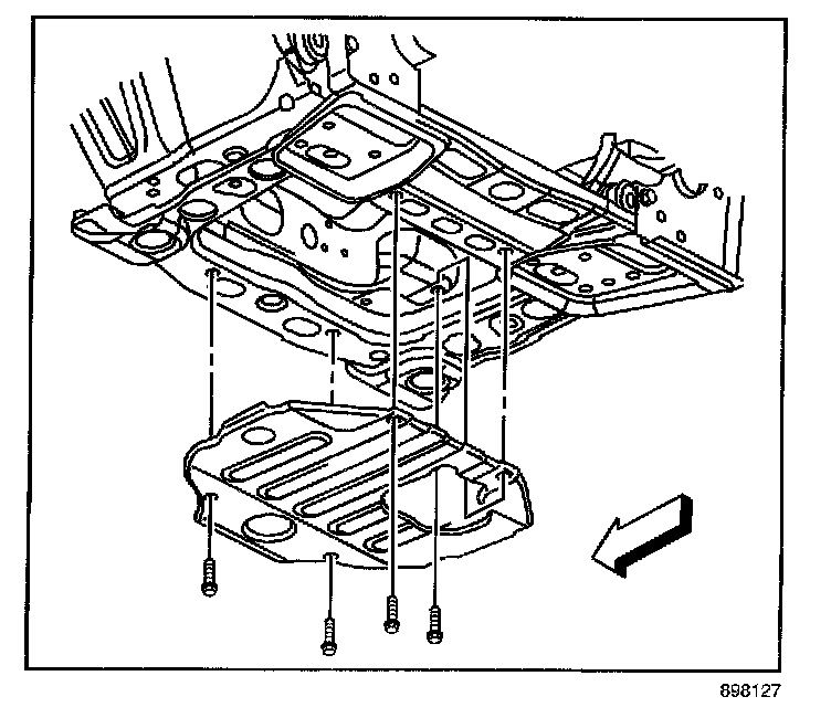 7. Reposition the starter and install the shield and transmission cover.