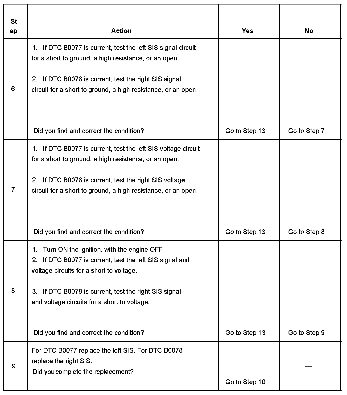 - DTCs B0077 and B0078 will set when one of the following conditions occur: