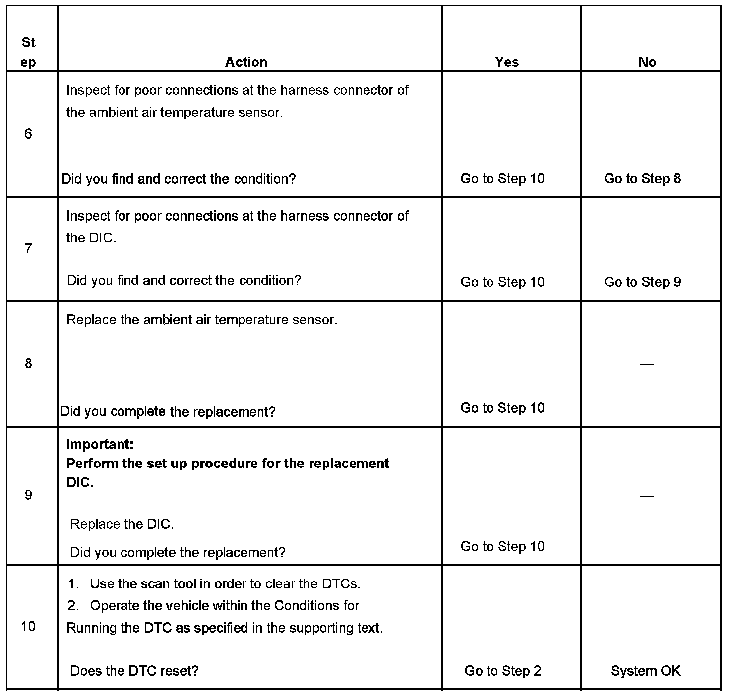 - DTC B0162 will become history when the DIC no longer detects a failure.