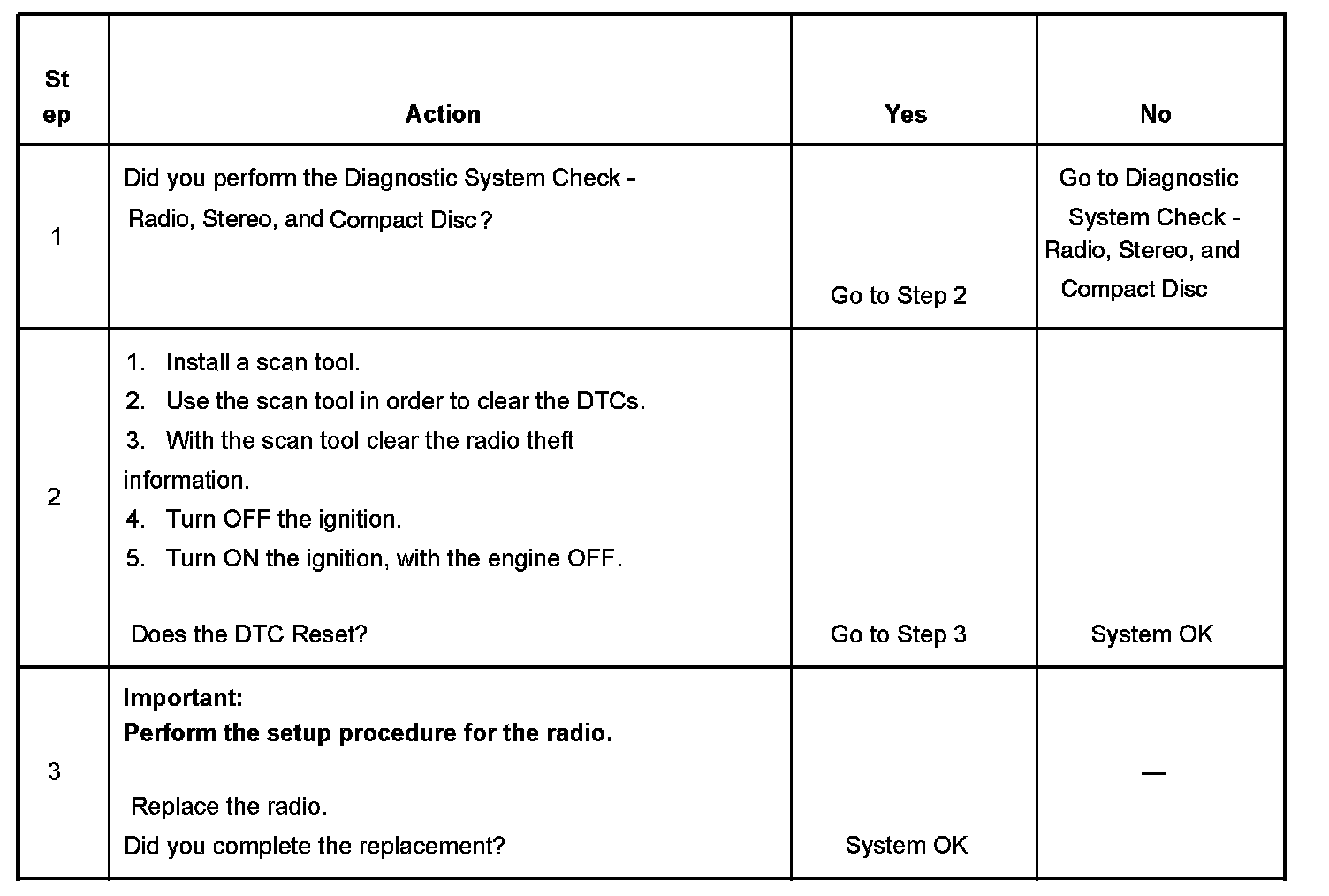 2. Clear all DTCs and radio theft information. Cycle the ignition in order for the radio to learn the VIN.