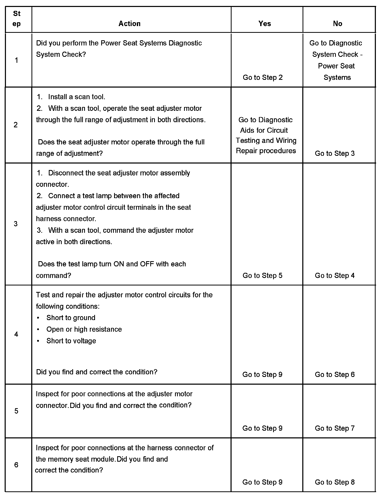 2. Verify that the DTC is current or history by attempting to operate the seat adjuster motor for which the code is set.