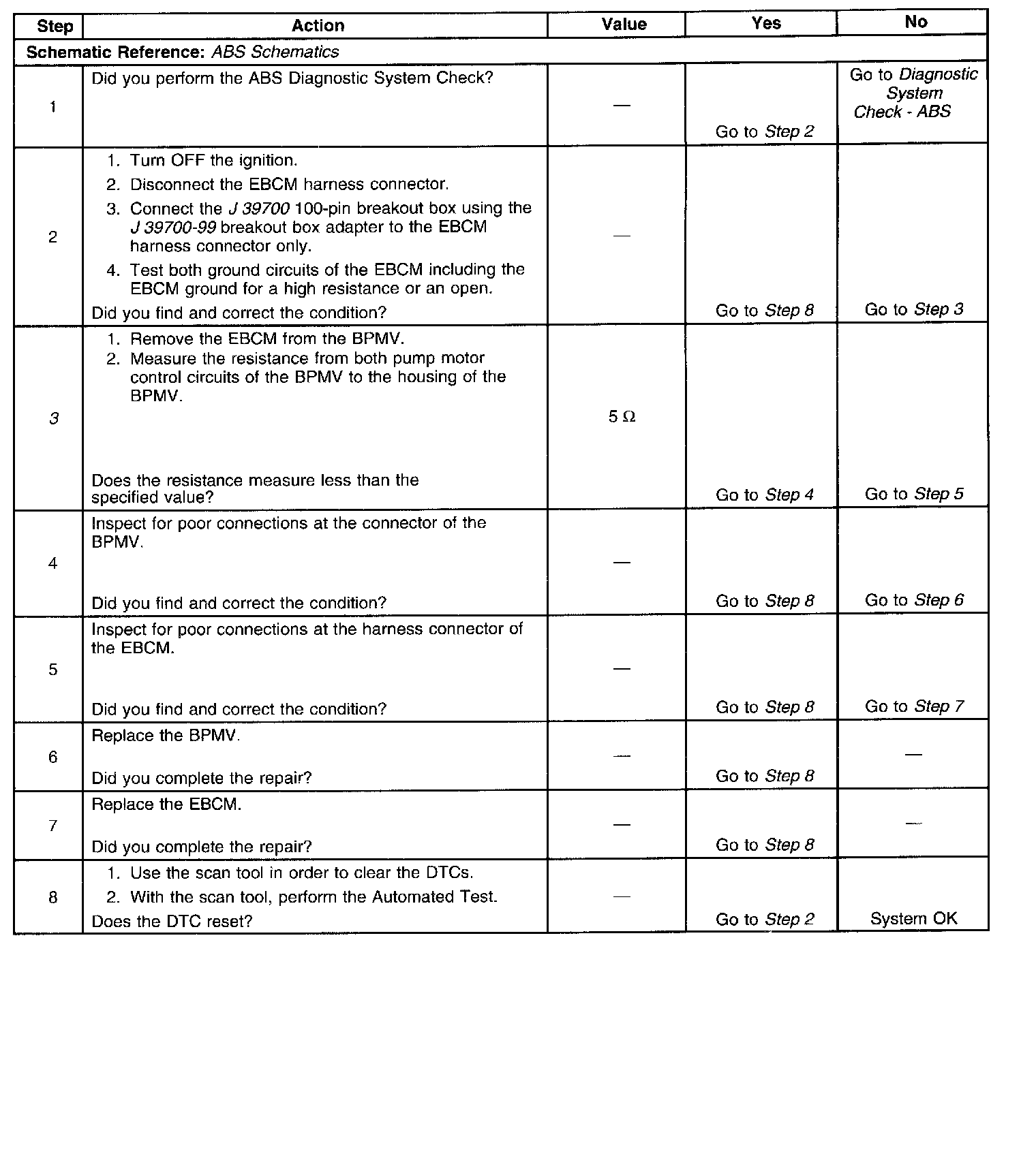 3. Tests the pump motor circuits of the BPMV for a short to the housing of the BPMV.