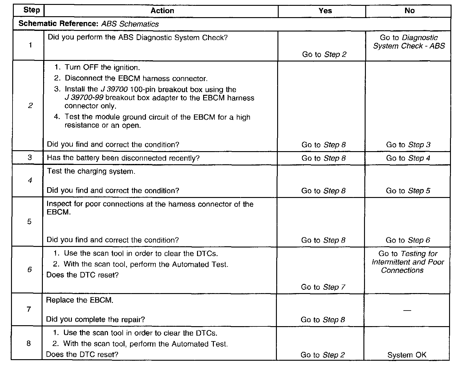 ^ The EBCM automatically clears the history DTC when a current DTC is not detected in 100 consecutive drive cycles.
