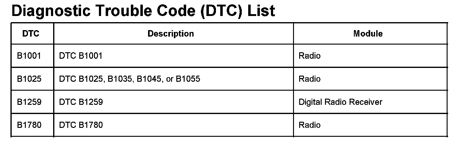 DTCs B1001 - B1780: