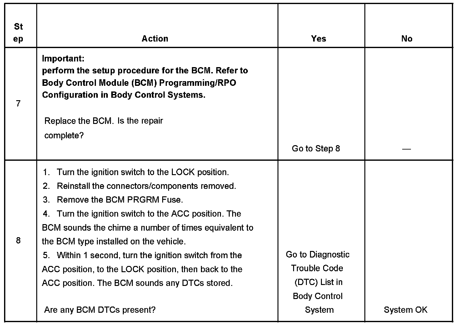 - The BCM sets the diagnostic trouble code (DTC) 3.