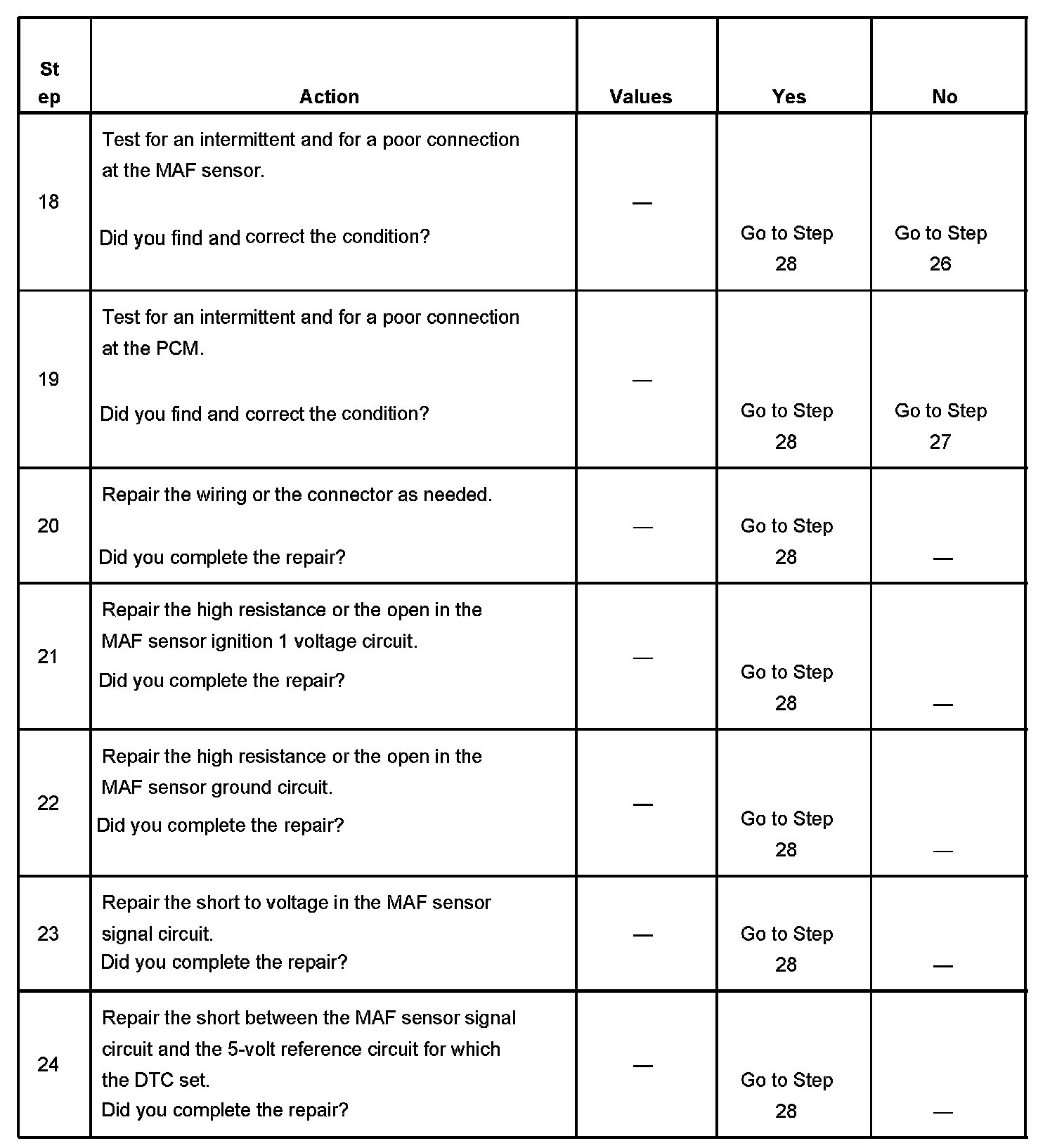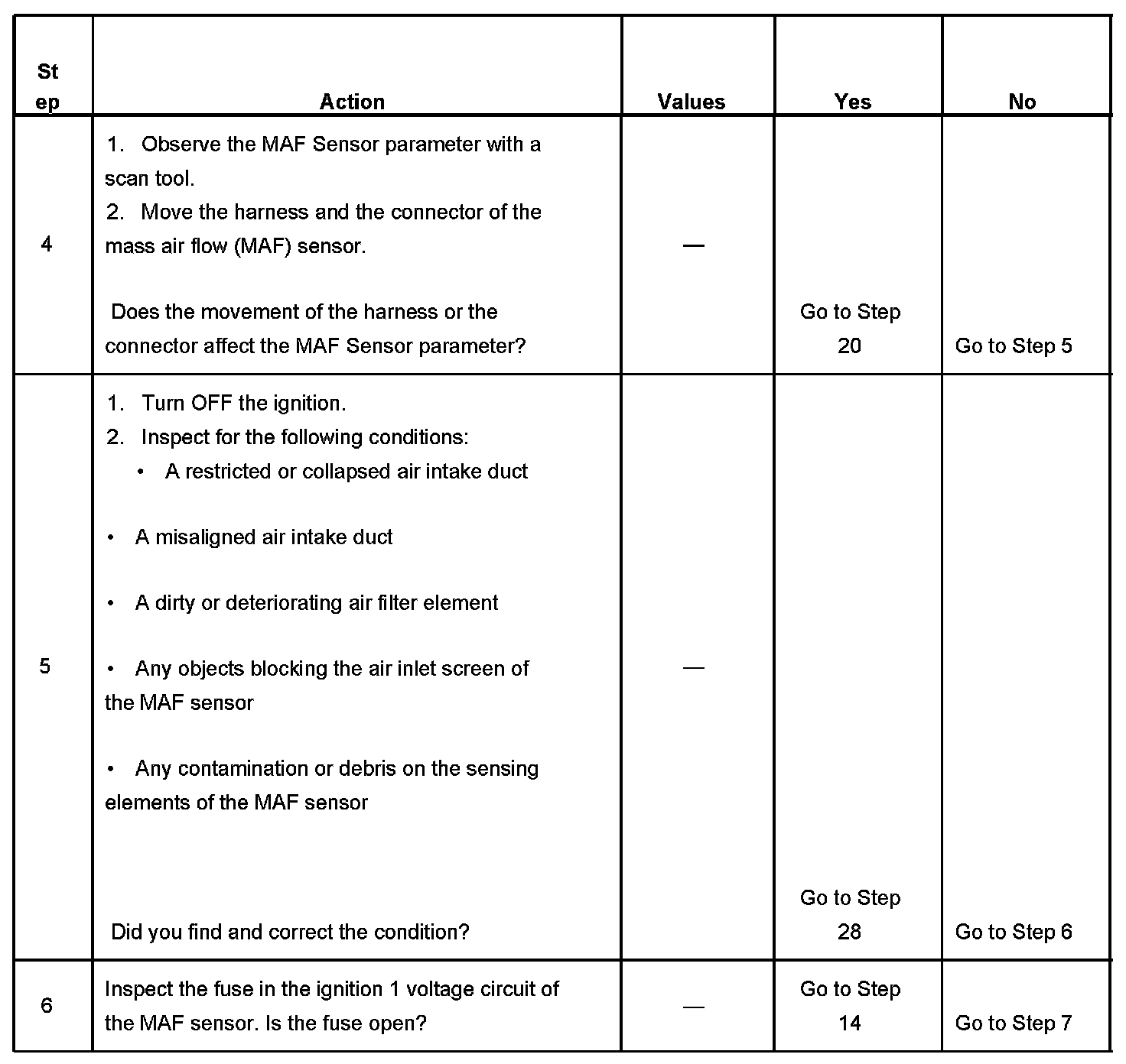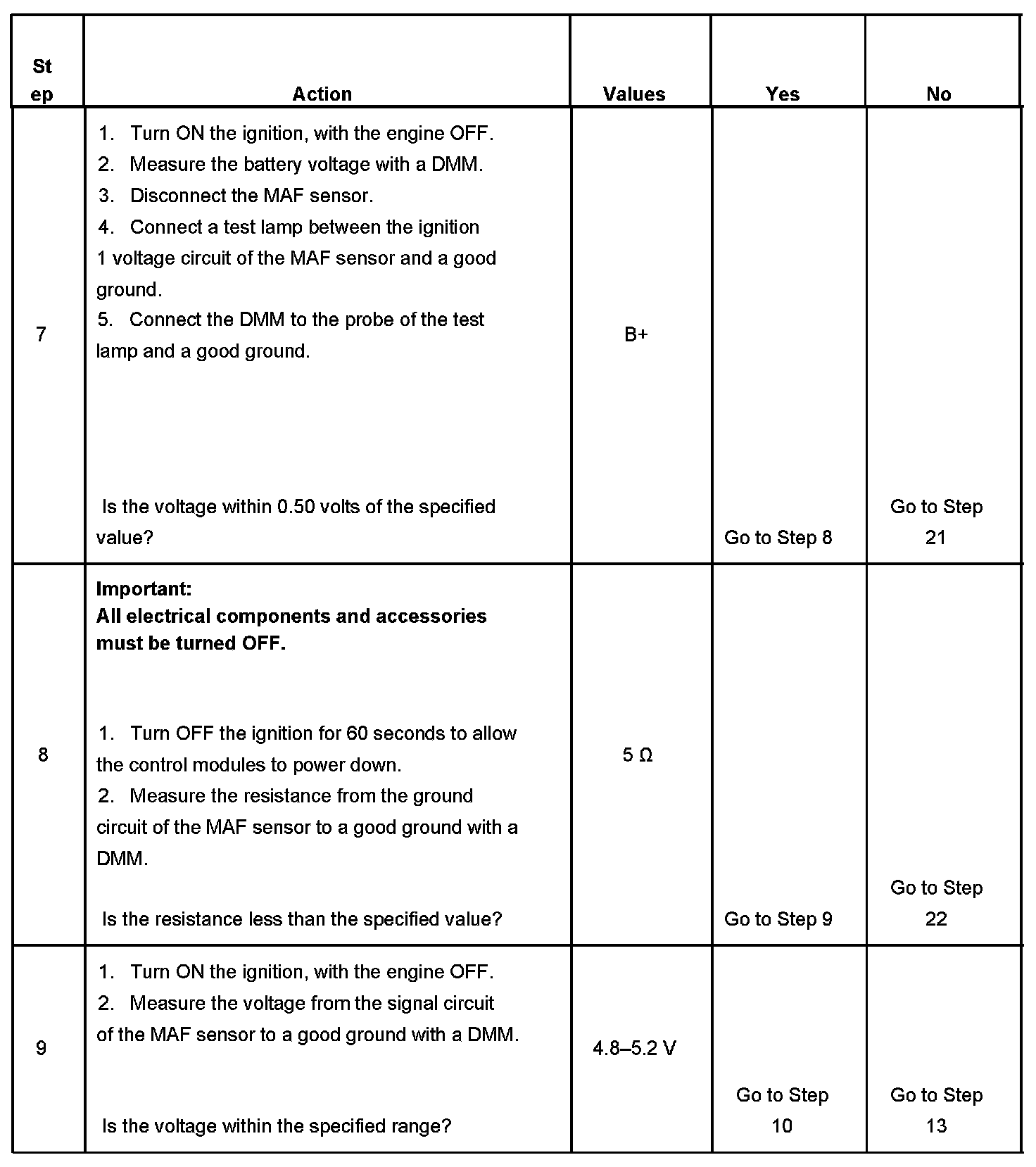 10. This step tests the signal circuit of the MAF sensor for a short to another 5-volt reference circuit.