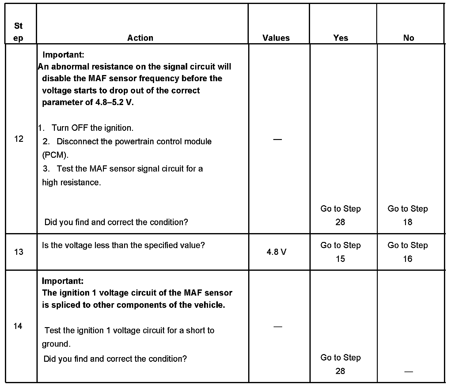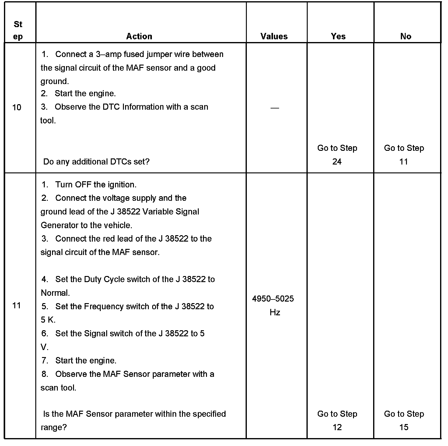 11. This step will determine if the PCM is able to process the frequency signal that it receives from the MAF sensor.