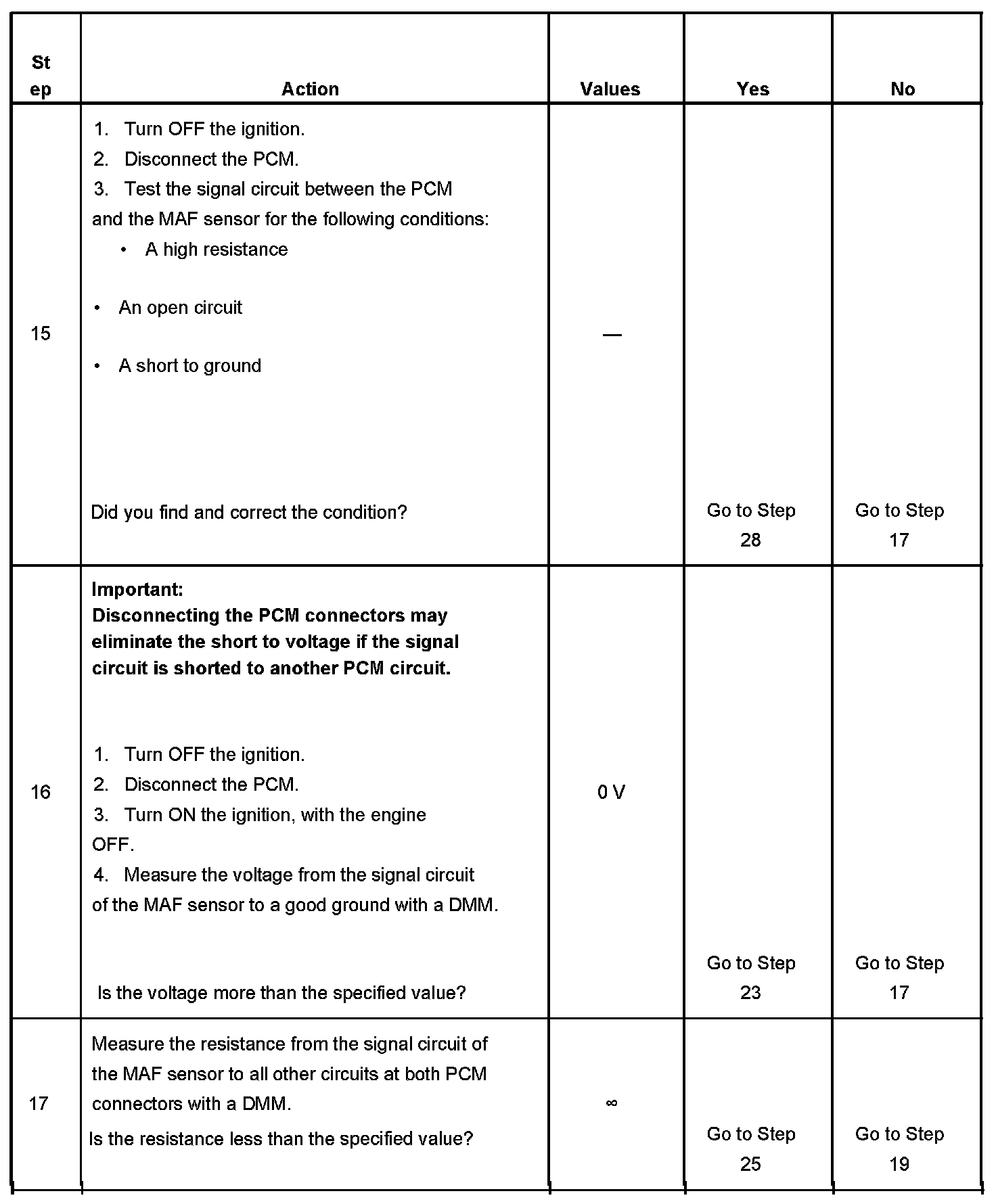 17. This step verifies that the signal circuit is not shorted to any other PCM circuit.