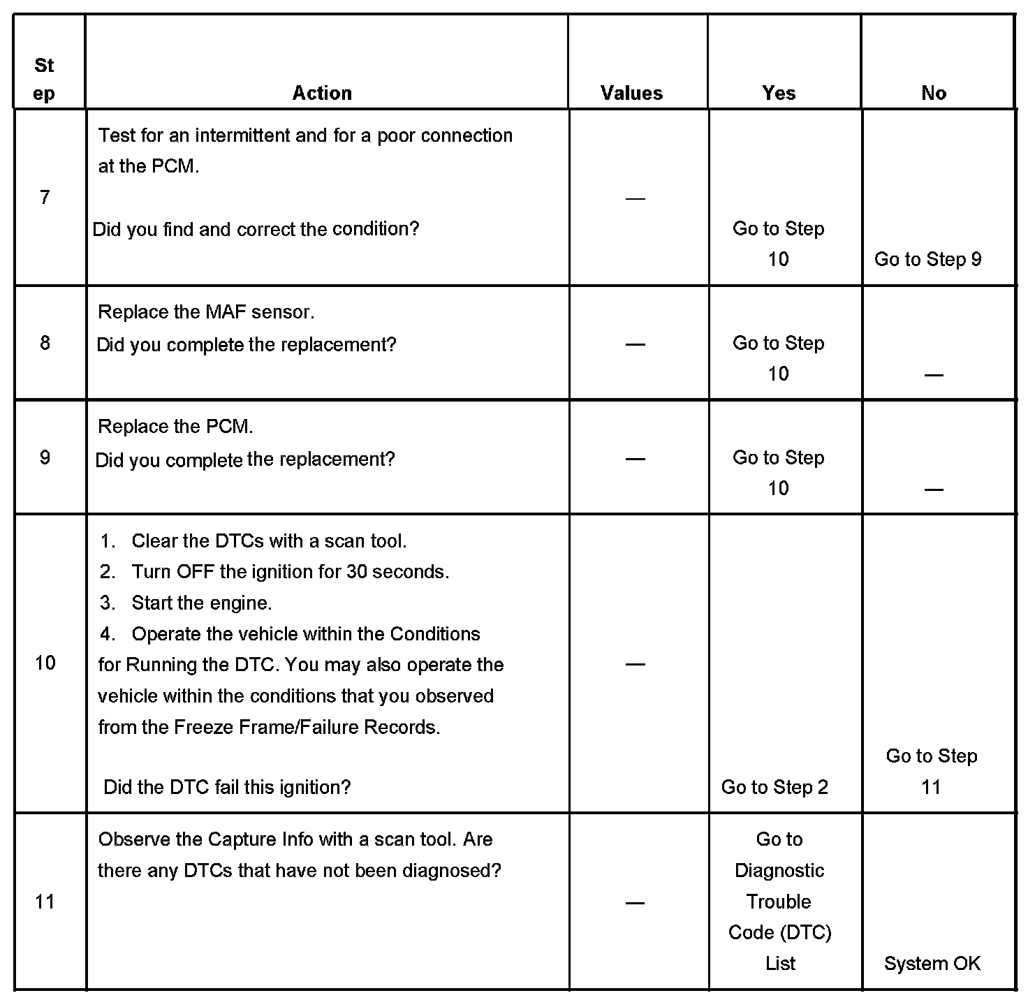- A current DTC, Last Test Failed, clears when the diagnostic runs and passes.