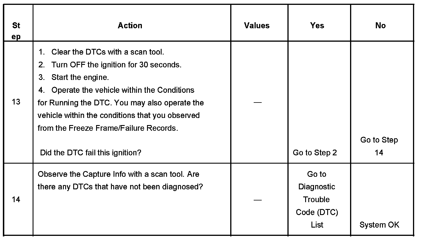 - A current DTC, Last Test Failed, clears when the diagnostic runs and passes.