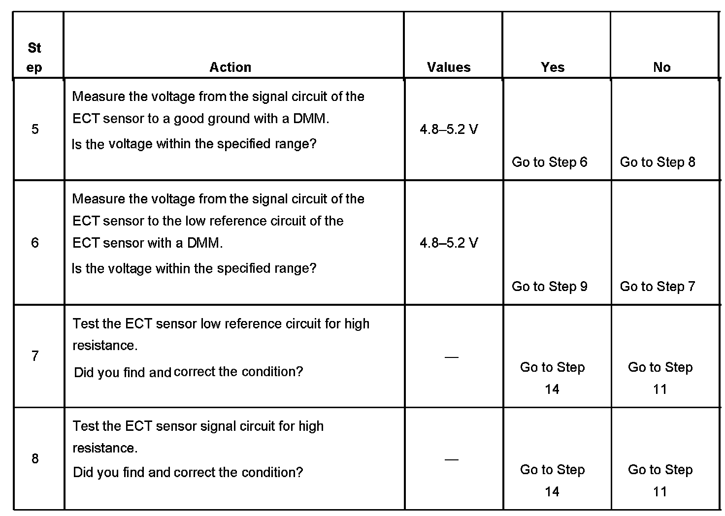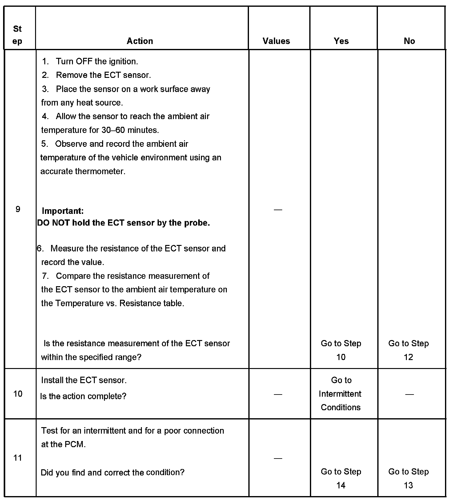 - DTCs P0112, P0113, P0116, P0117, P0118 are not set.