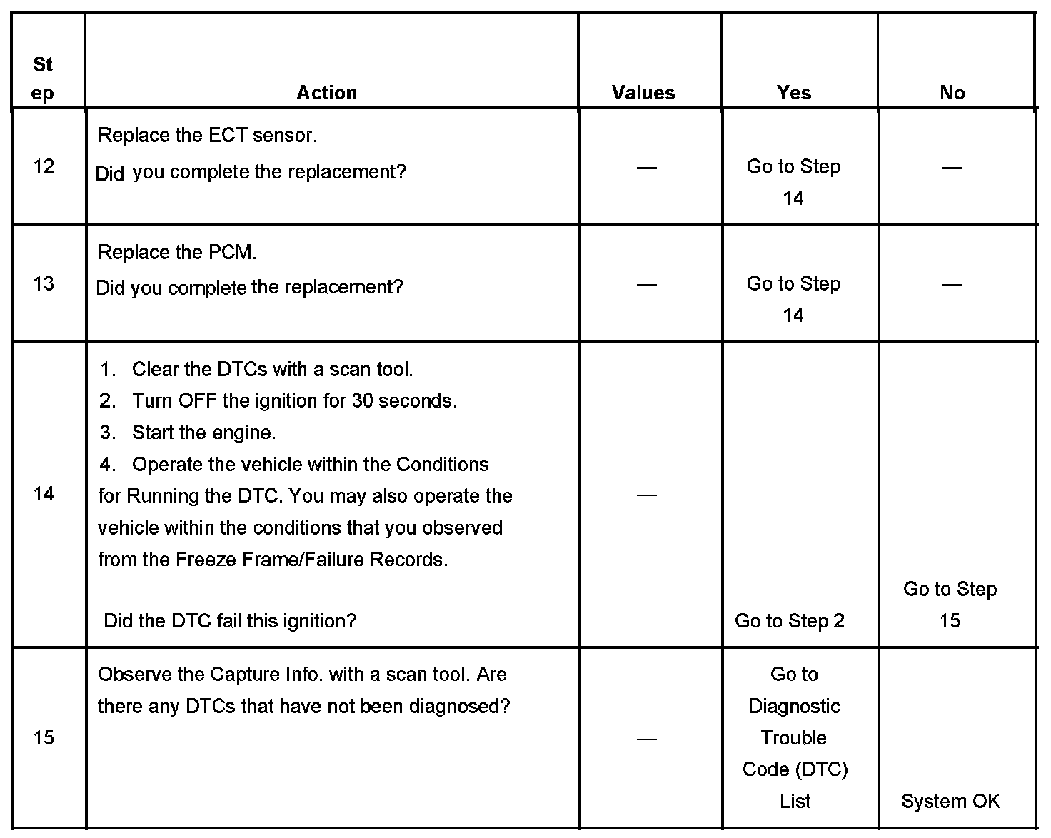 - A current DTC, Last Test Failed, clears when the diagnostic runs and passes.