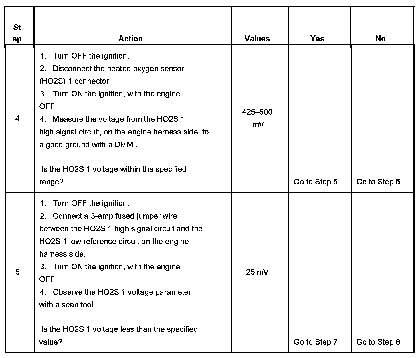 - A HO2S 1 high signal circuit