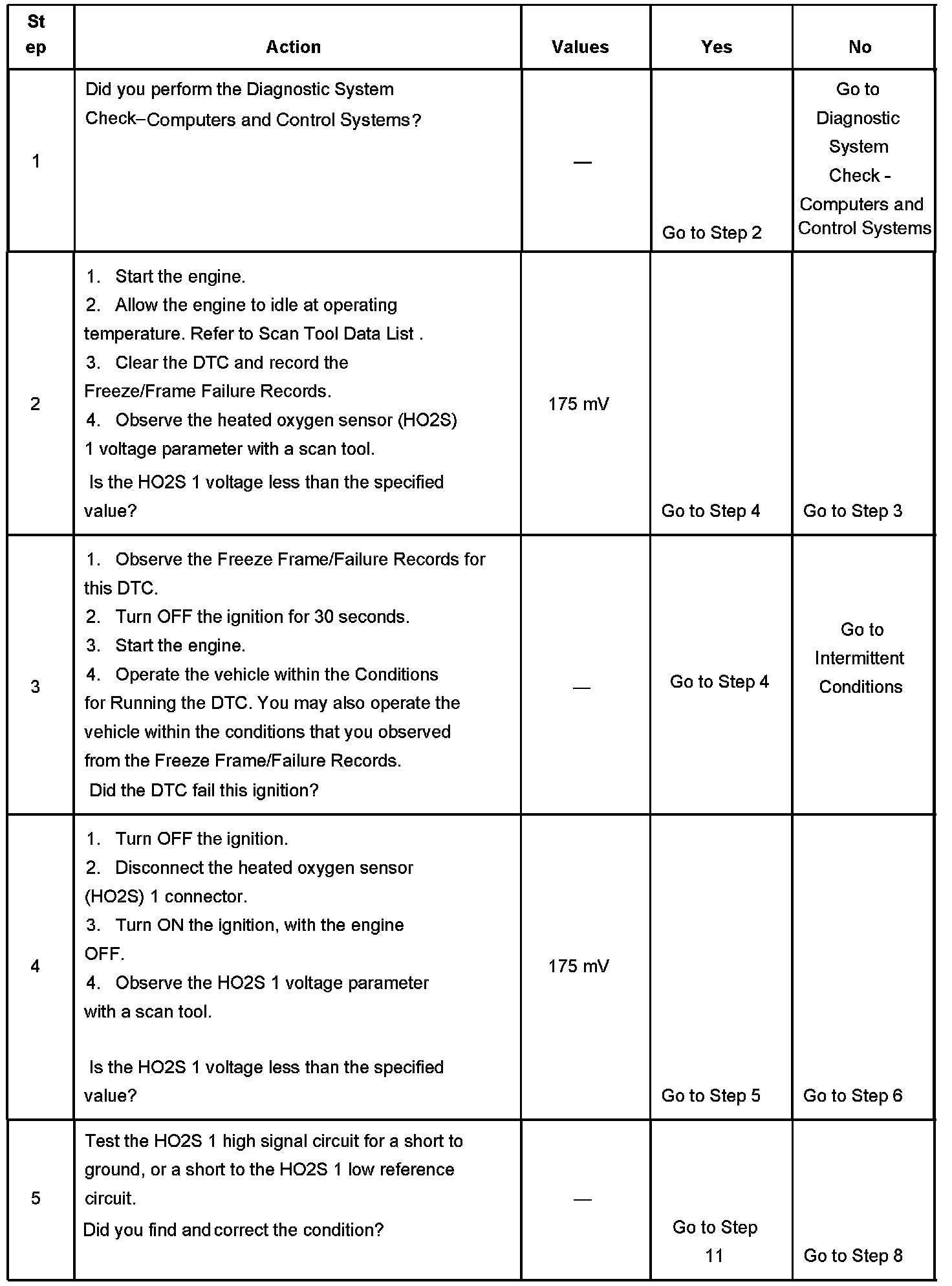The PCM detects that the HO2S 1 voltage is less than 79 mV for more than 51 seconds.