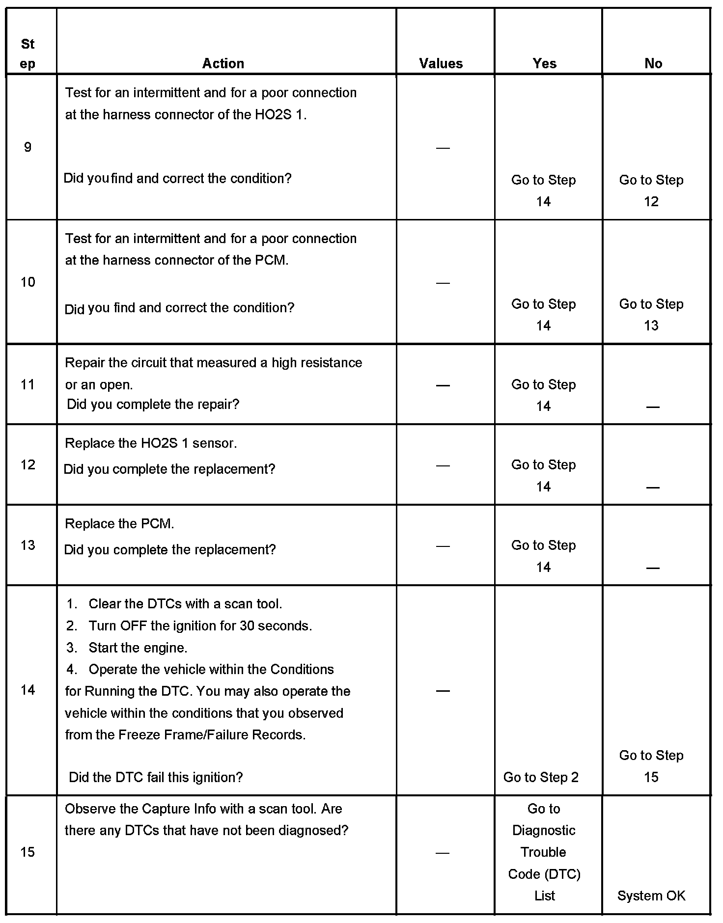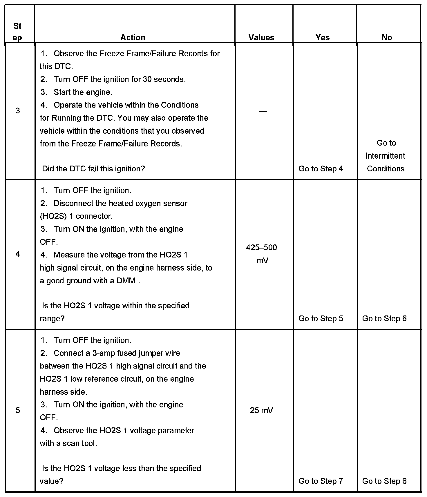 The PCM detects that the HO2S 1 signal voltage remains between 382-525 mV for more than 30 seconds.