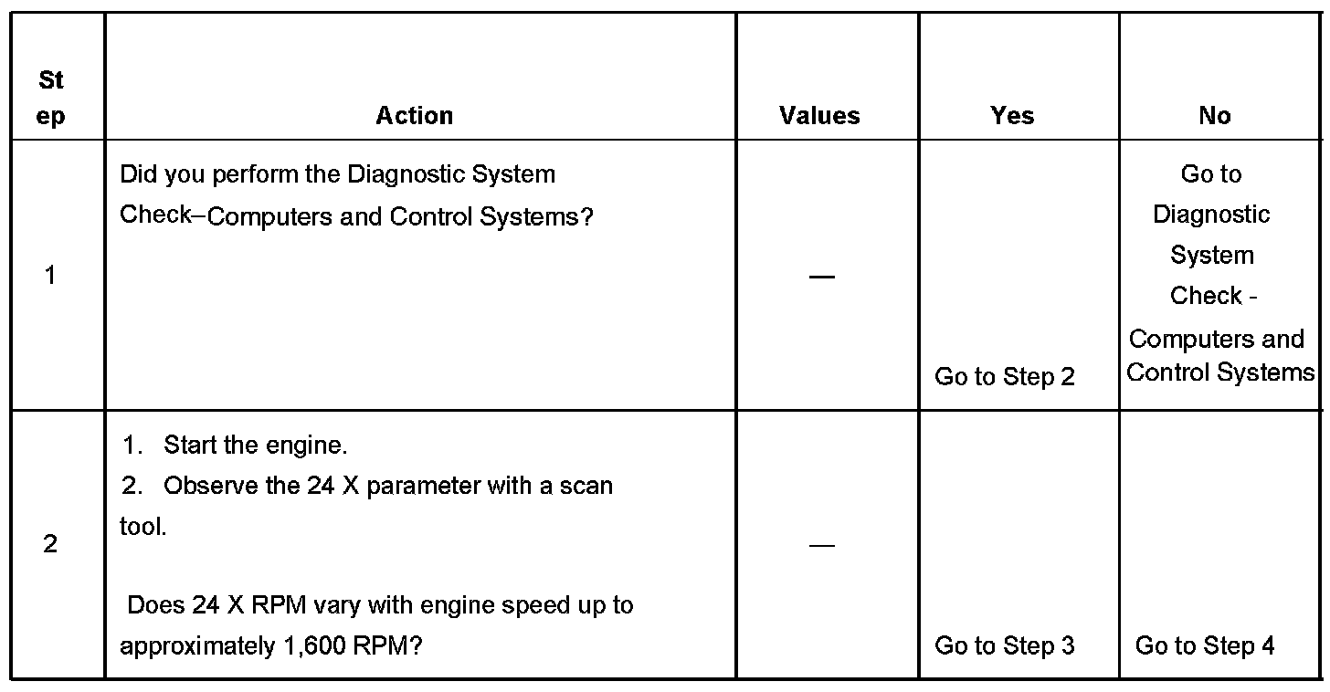 8. The 24X RPM on the scan tool should change each time the medium resolution engine speed signal circuit is touched.
