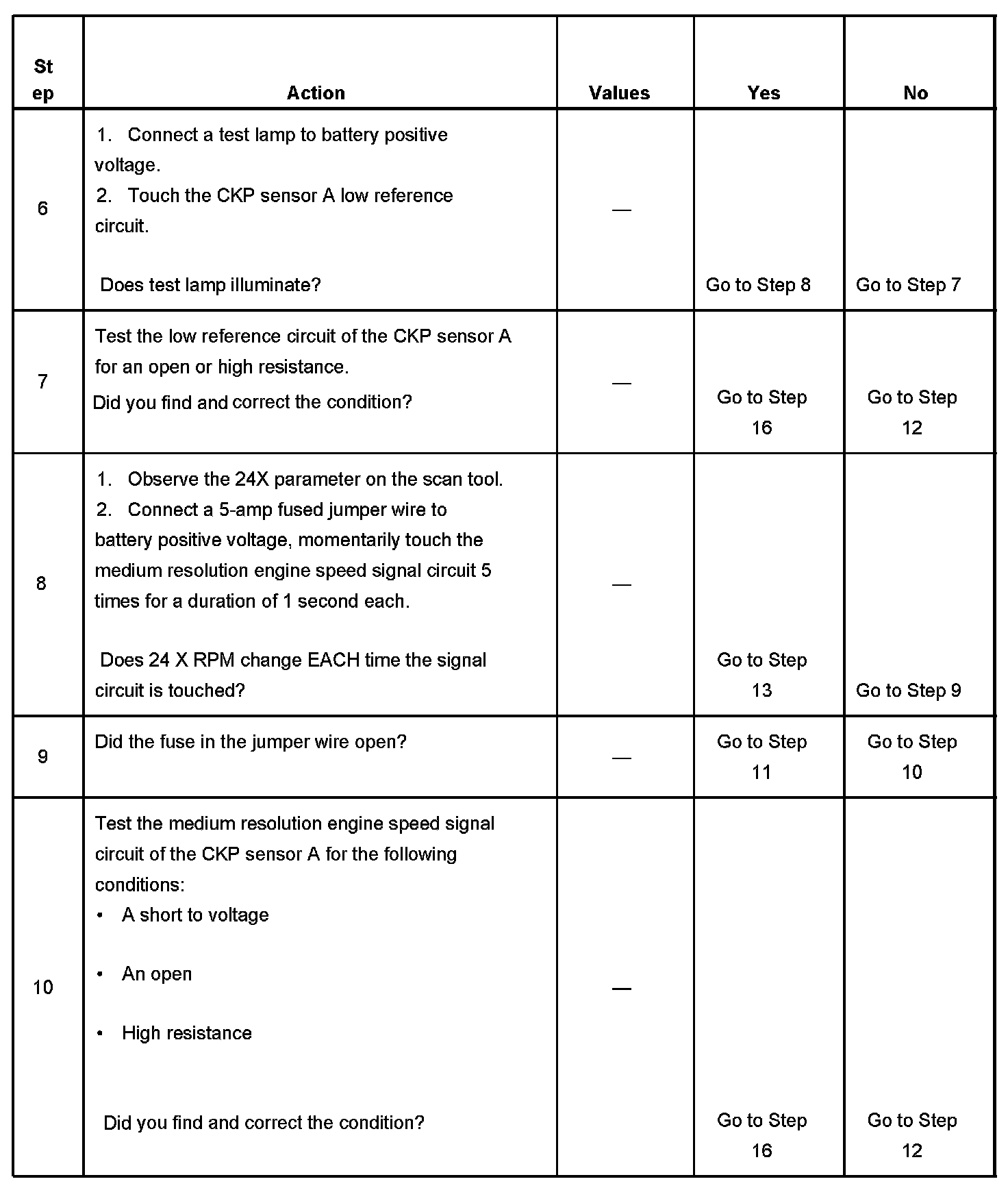 - The CKP sensor 1 signal circuit