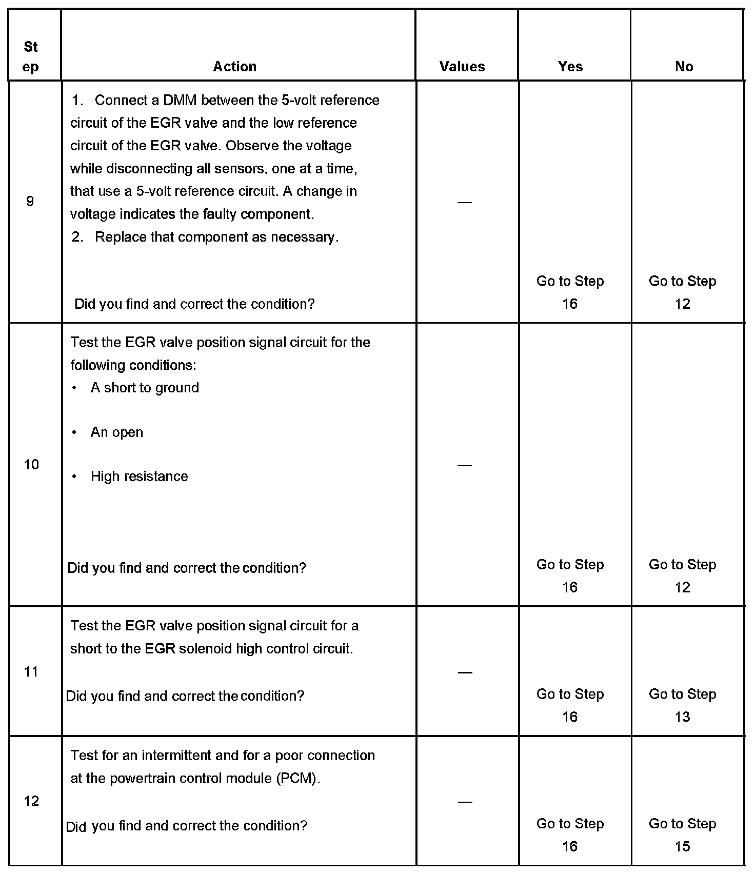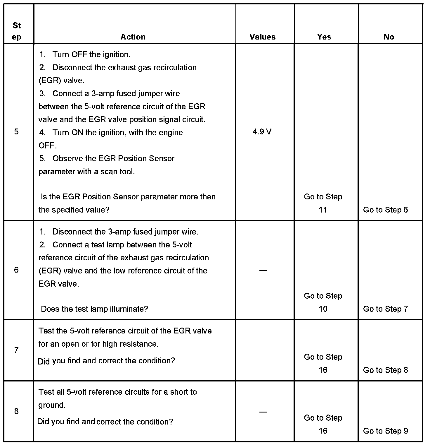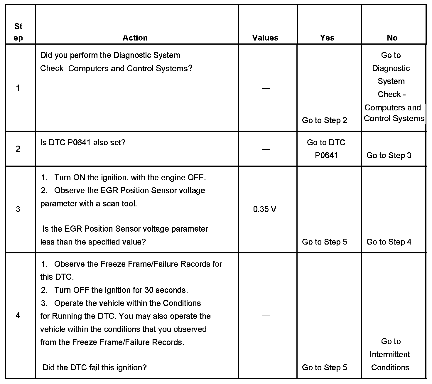 - The EGR Position Sensor parameter is less than 0.35 volts.