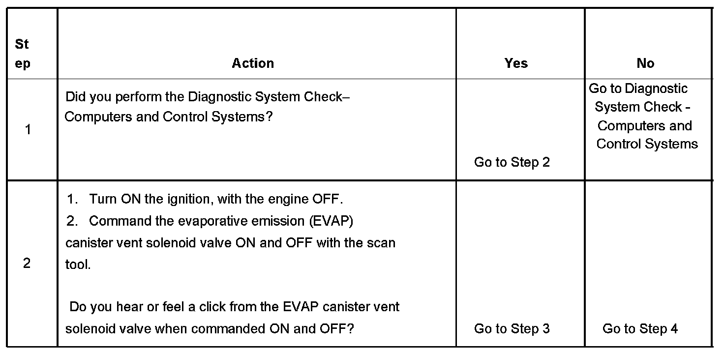 2. Listen or feel for a click when the EVAP canister vent solenoid valve operates. Ensure that both the ON and the OFF states are commanded.