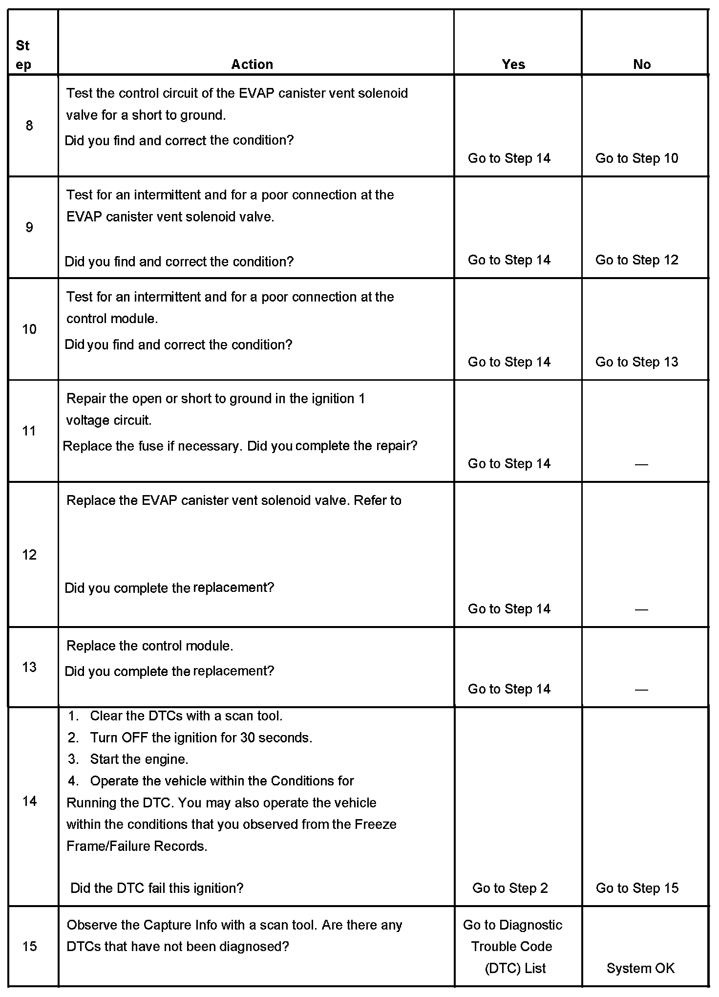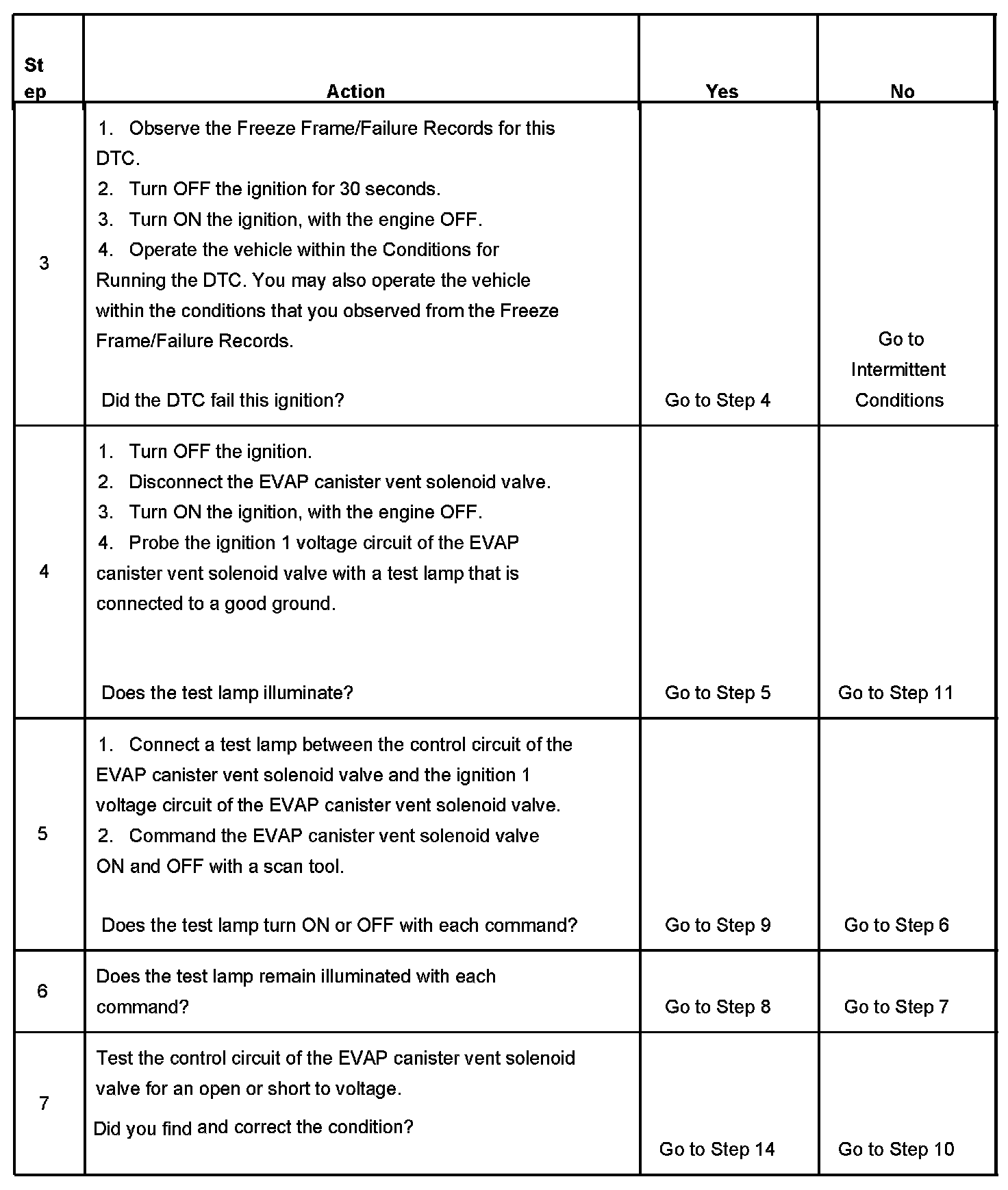 6. This step tests if the EVAP canister vent solenoid valve control circuit is grounded.