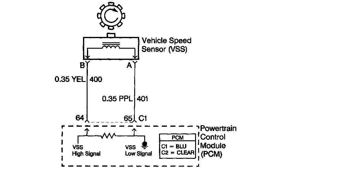 The Vehicle Speed Sensor (VSS) system is a pulse generator consisting of a speed sensor assembly, located in the case extension, and a toothed vehicle speed sensor reluctor wheel, which is pressed onto the final drive carrier assembly. As the vehicle drives forward, the vehicle speed sensor reluctor wheel rotates. This rotation produces a variable AC signal in the pickup coil that is proportional to vehicle speed. The PCM uses this signal in order to calculate vehicle speed, shift timing and gear ratios.