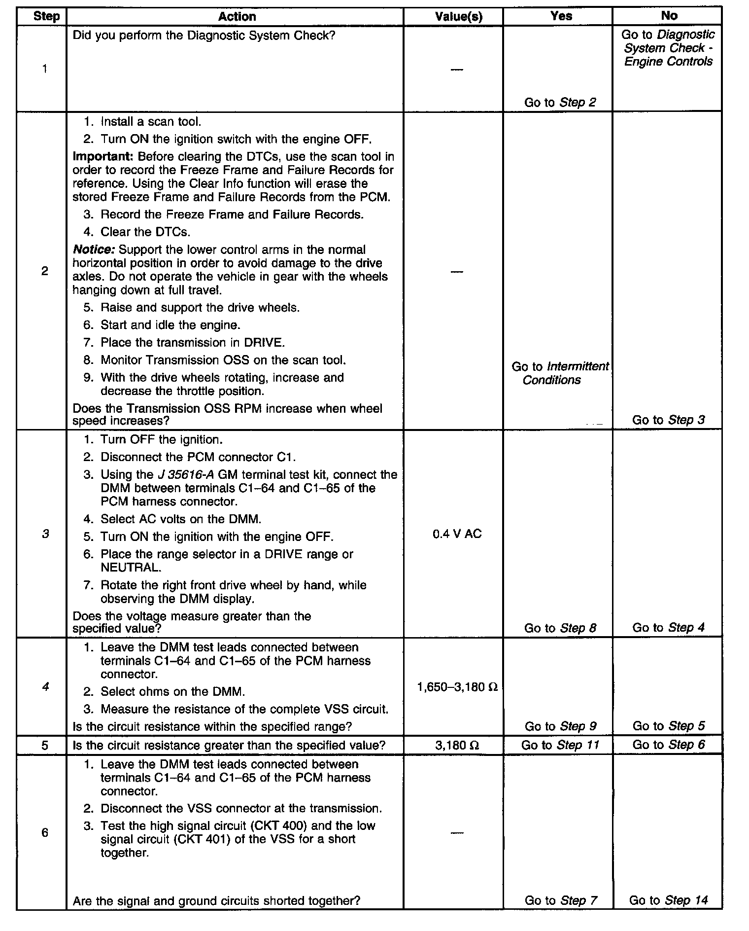 3. This step tests the ability of the VSS to produce an AC voltage. This step also verifies the integrity of the wiring to the PCM.