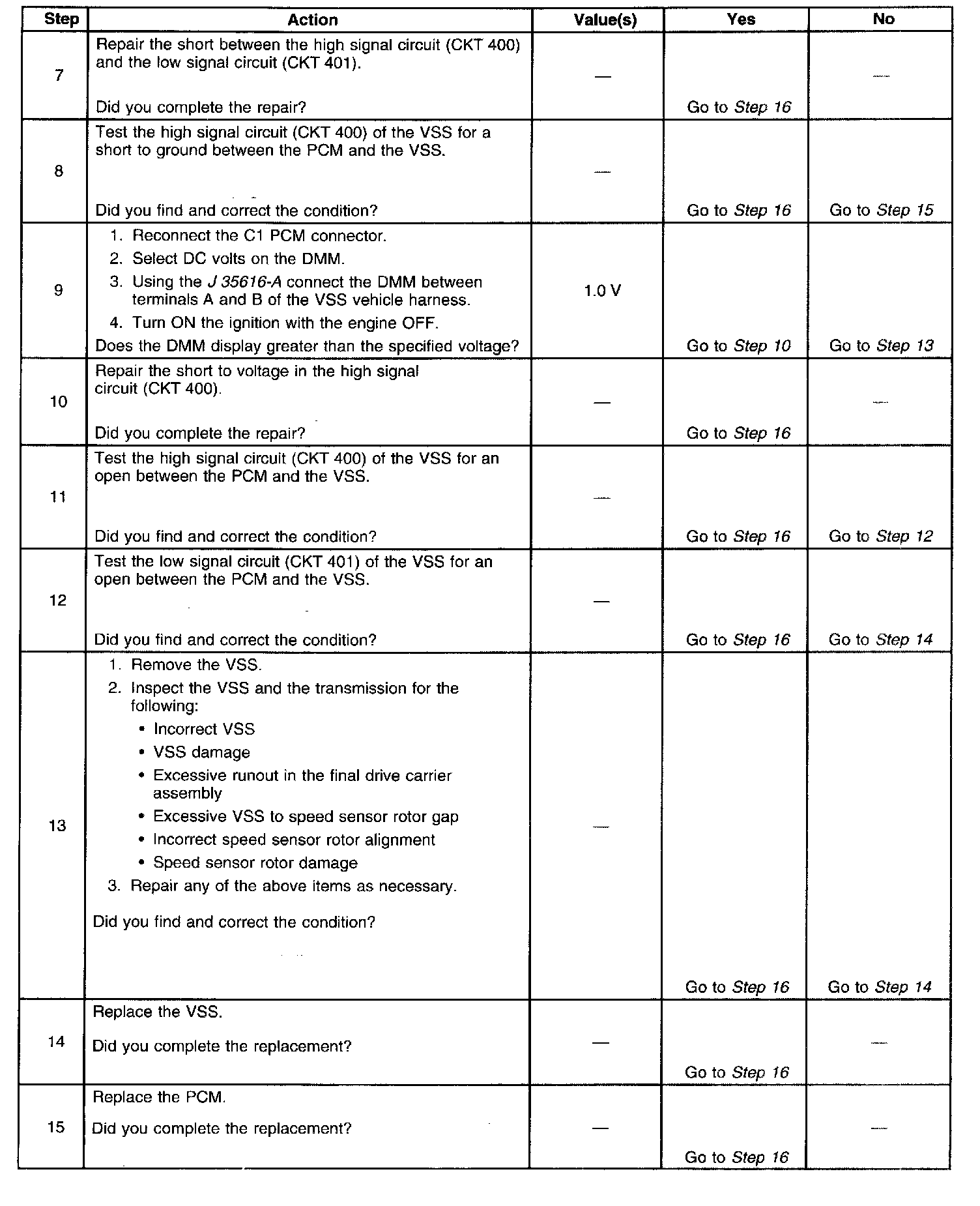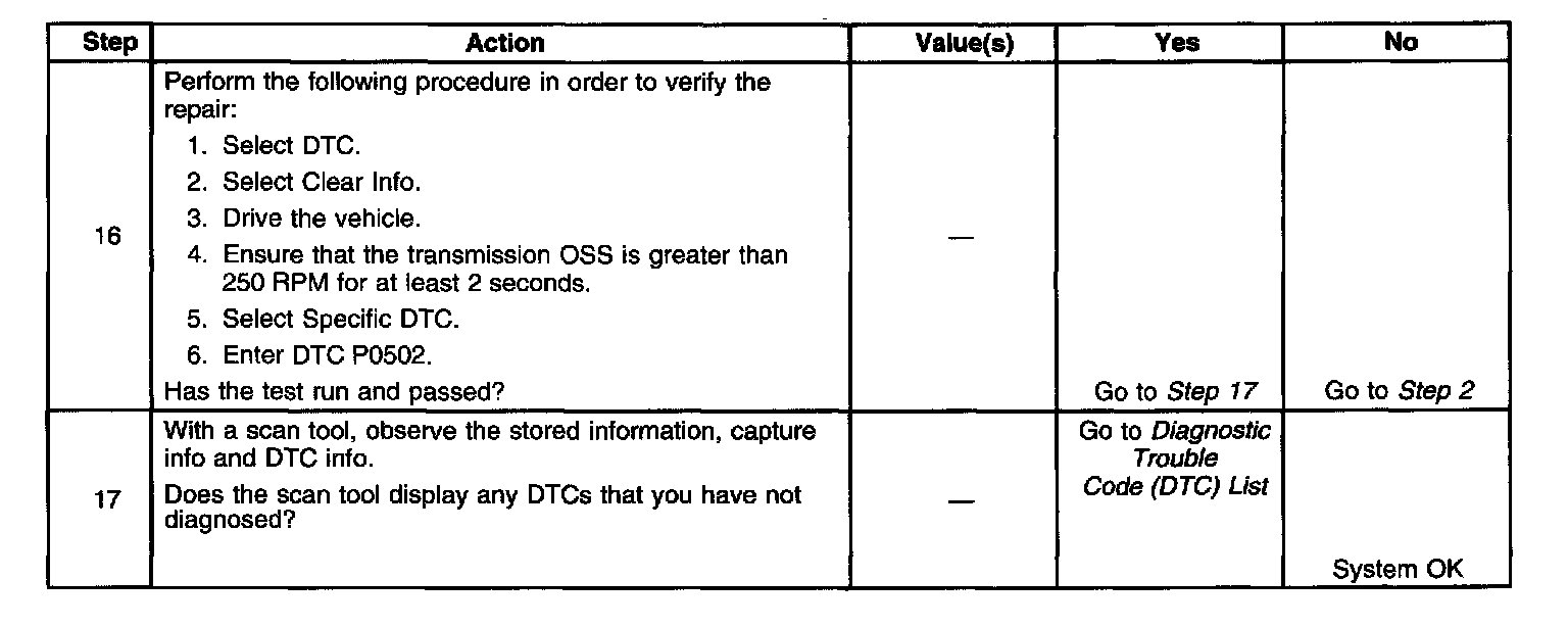 DTC P0502 Step 16 - 17: