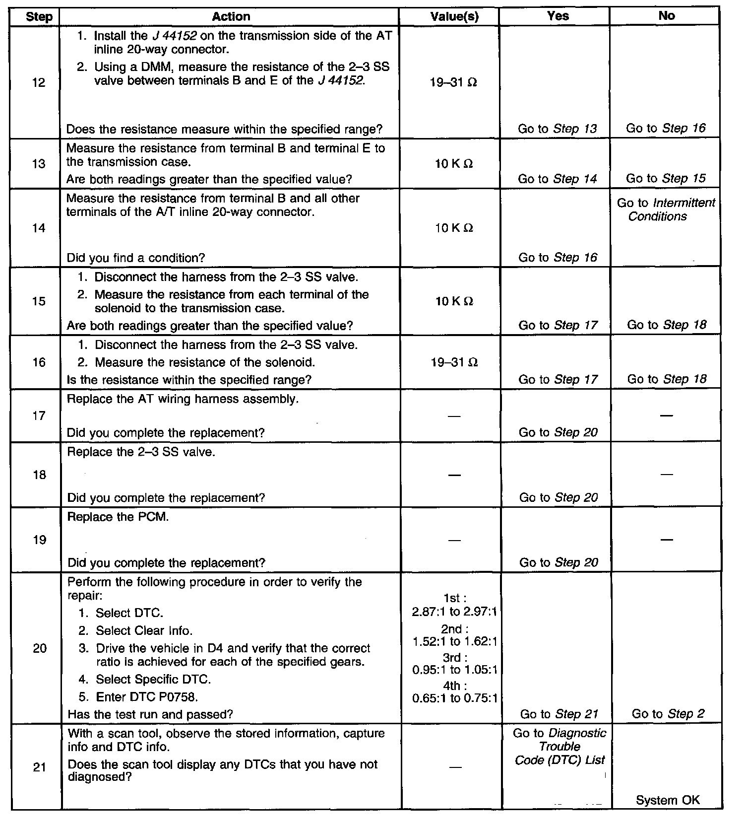 If the PCM detects a continuous open, short to ground or short to power in the 2-3 SS valve circuit, then DTC P0758 sets. DTC P0758 is a type A DTC.