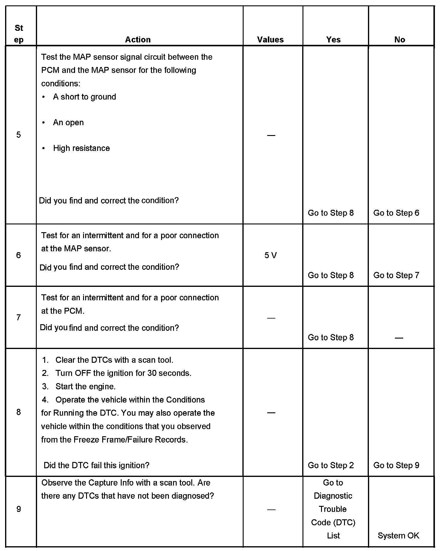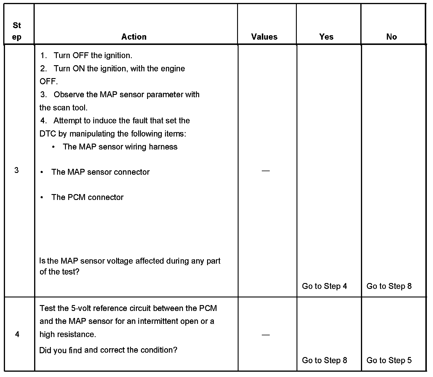 The PCM detects that the MAP sensor voltage is intermittently less than 0.1 volt.