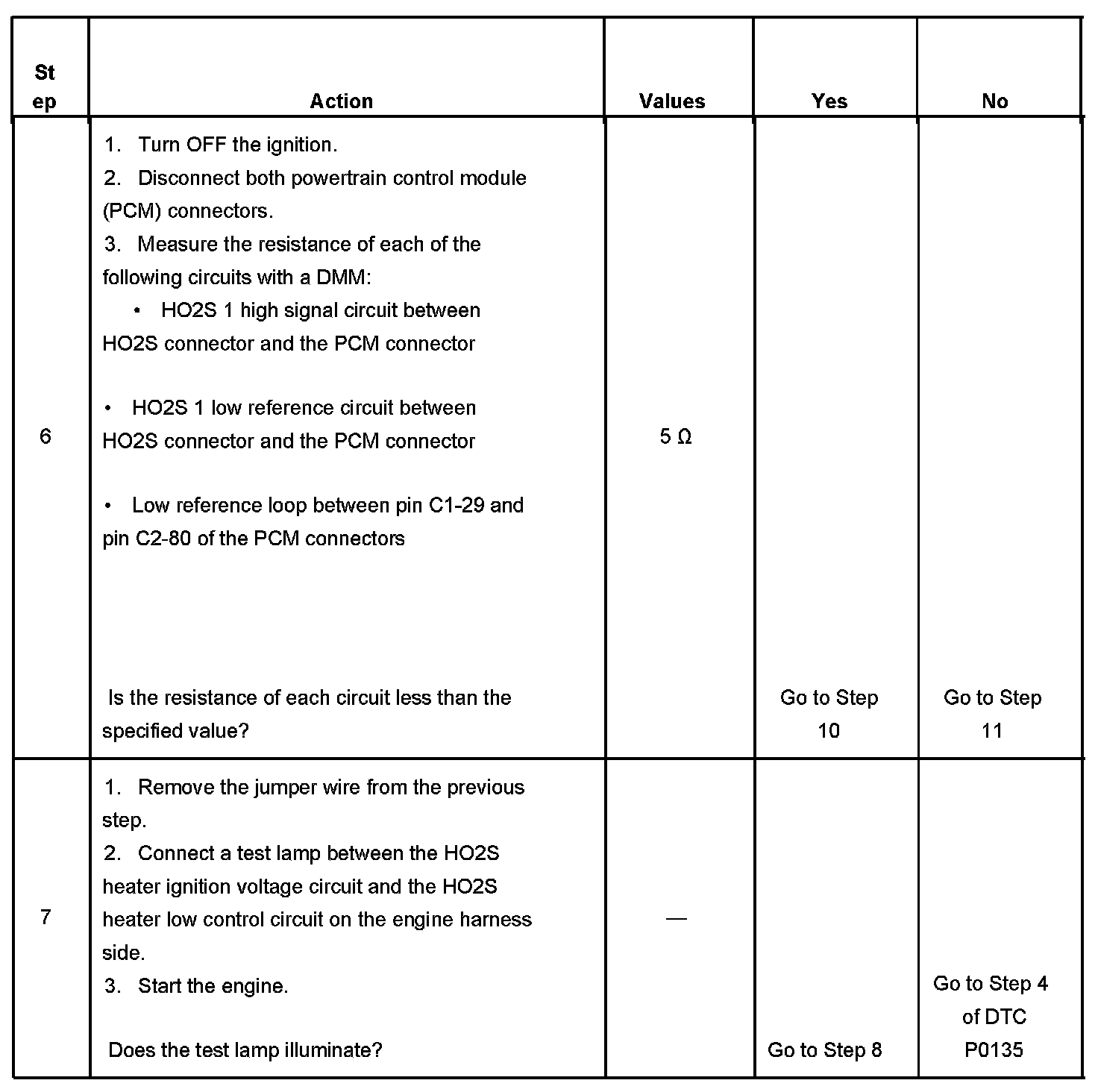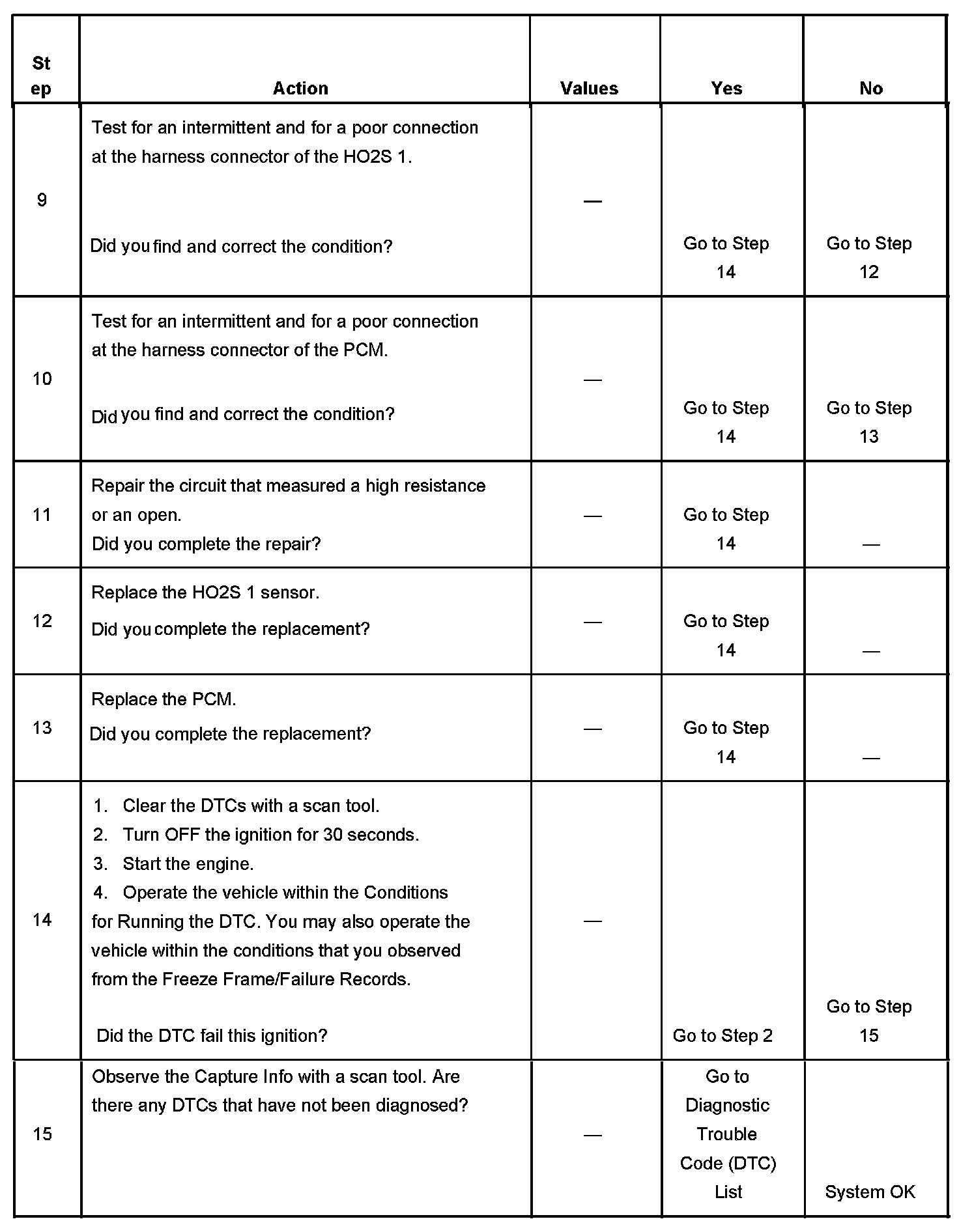 Heated oxygen sensors (HO2S) are used for fuel control and post catalyst monitoring. Each HO2S compares the oxygen content of the surrounding air with the oxygen content of the exhaust stream. When the vehicle is first started, the powertrain control module (PCM) operates in an Open Loop mode, ignoring the HO2S signal voltage when calculating the air-to-fuel ratio. The PCM supplies the HO2S with a reference, or bias, voltage of about 450 mV. The HO2S generates a voltage within a range of 0-1,000 mV that fluctuates above and below bias voltage once in Closed Loop. A high HO2S voltage output indicates a rich fuel mixture. A low HO2S voltage output indicates a lean mixture. Heating elements inside the HO2S minimize the time required for the sensors to reach operating temperature, and to provide an accurate voltage signal. If the PCM detects that the HO2S 1 voltage did not switch above 598 mV and below 299 mV enough times during a calibrated time period, DTC P1133 will set.