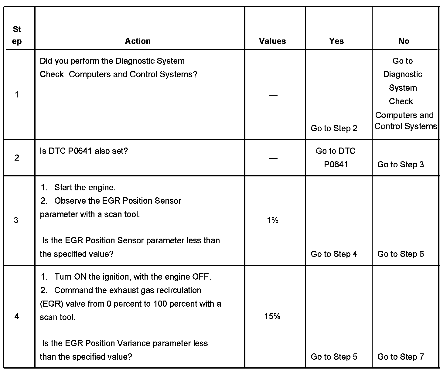 - The EGR Position Sensor parameter is more than 40 percent and is steady for 0.5 seconds after a test failure and before the next test will be run.