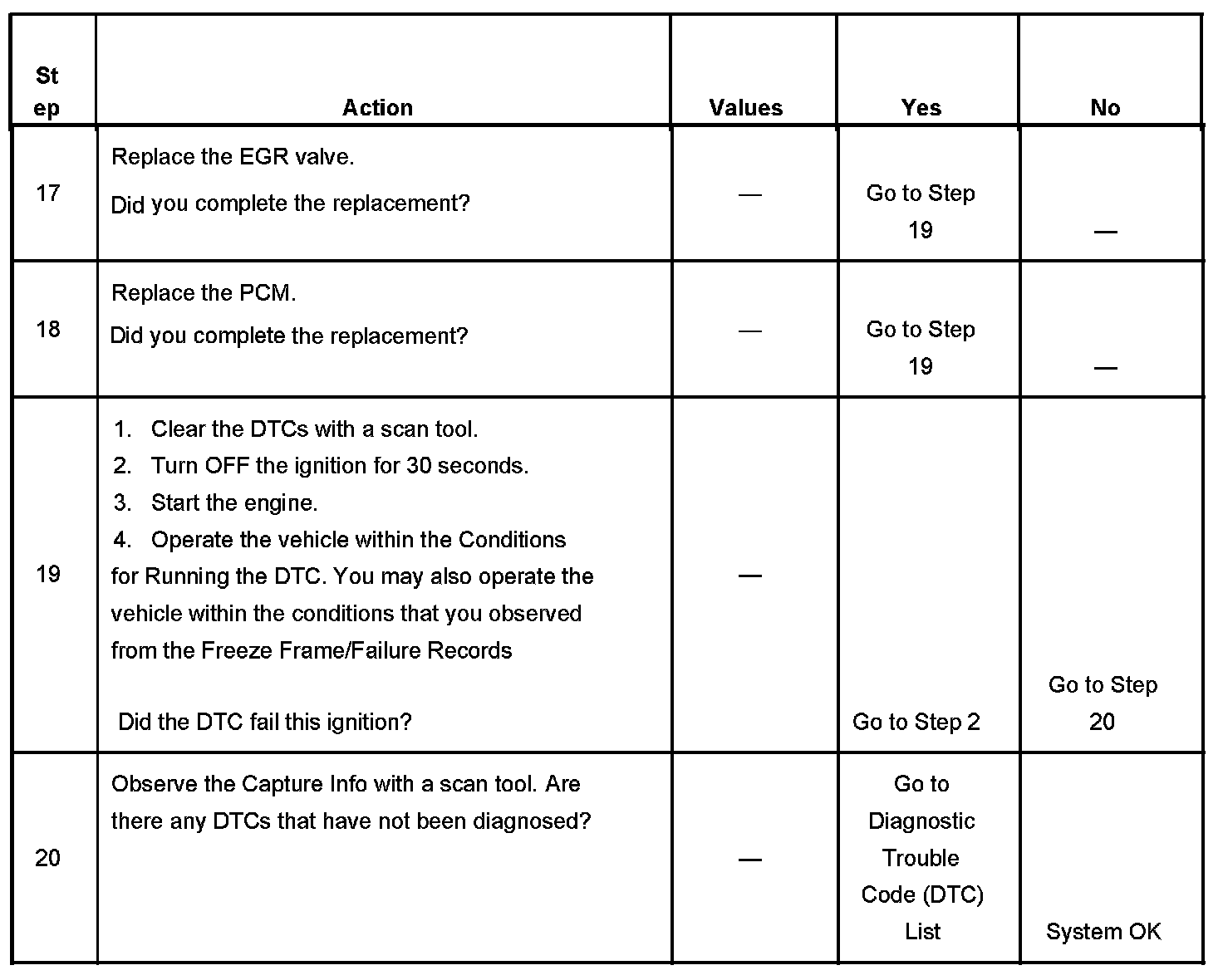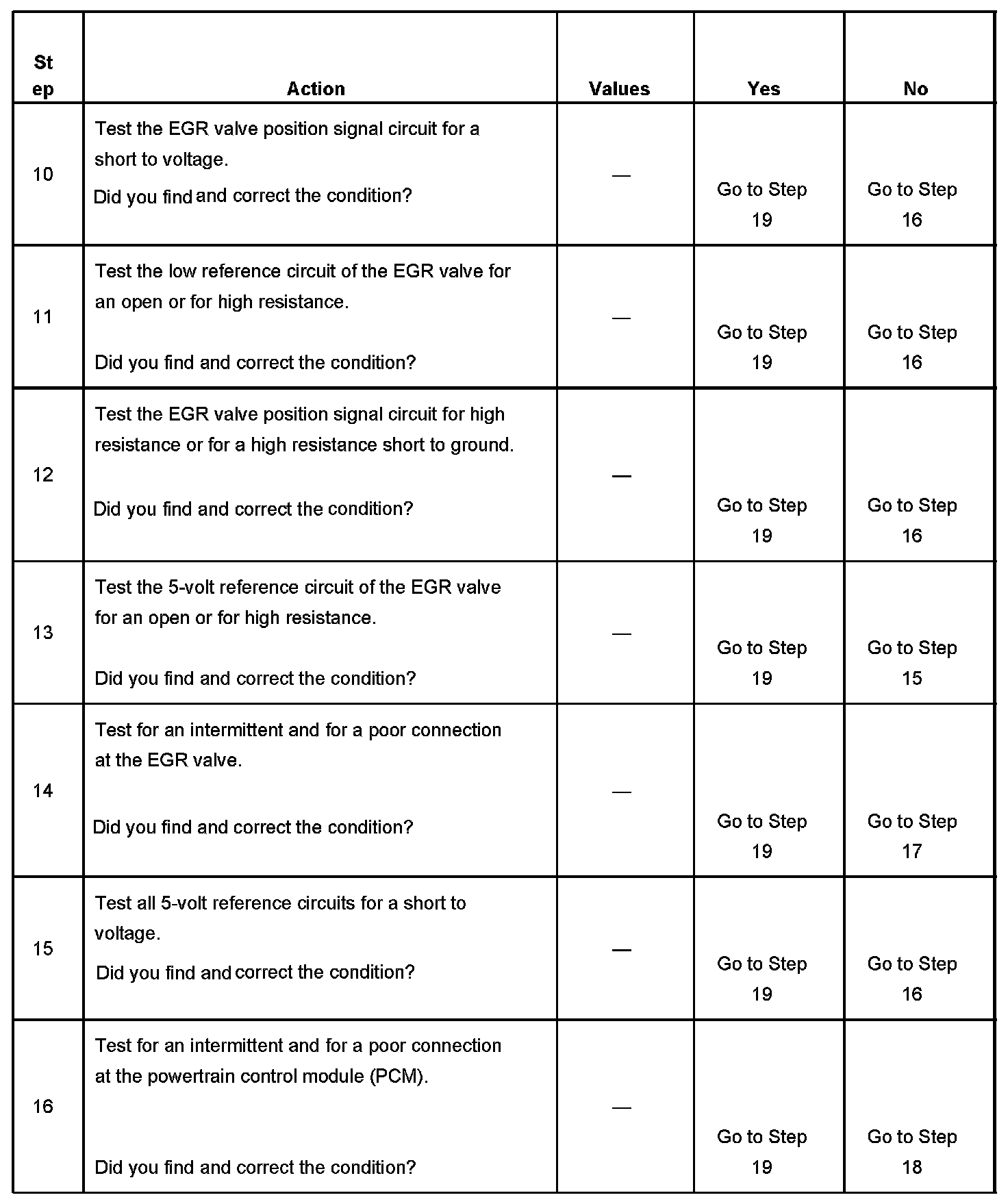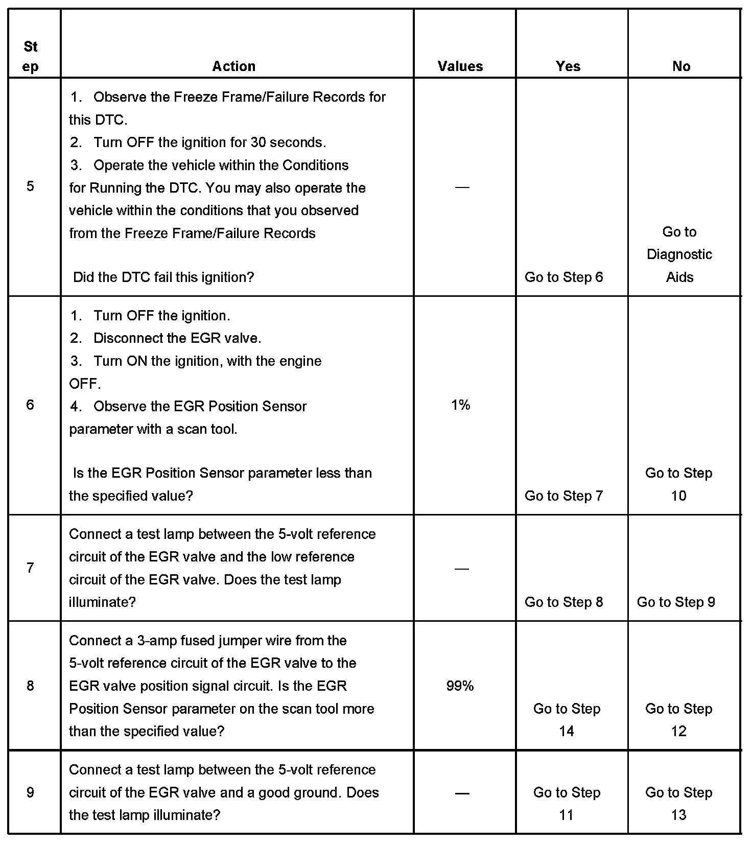 - The EGR valve is commanded to 0 percent for 20 seconds after the EGR valve has been commanded to open more than 40 percent for 0.5 seconds.