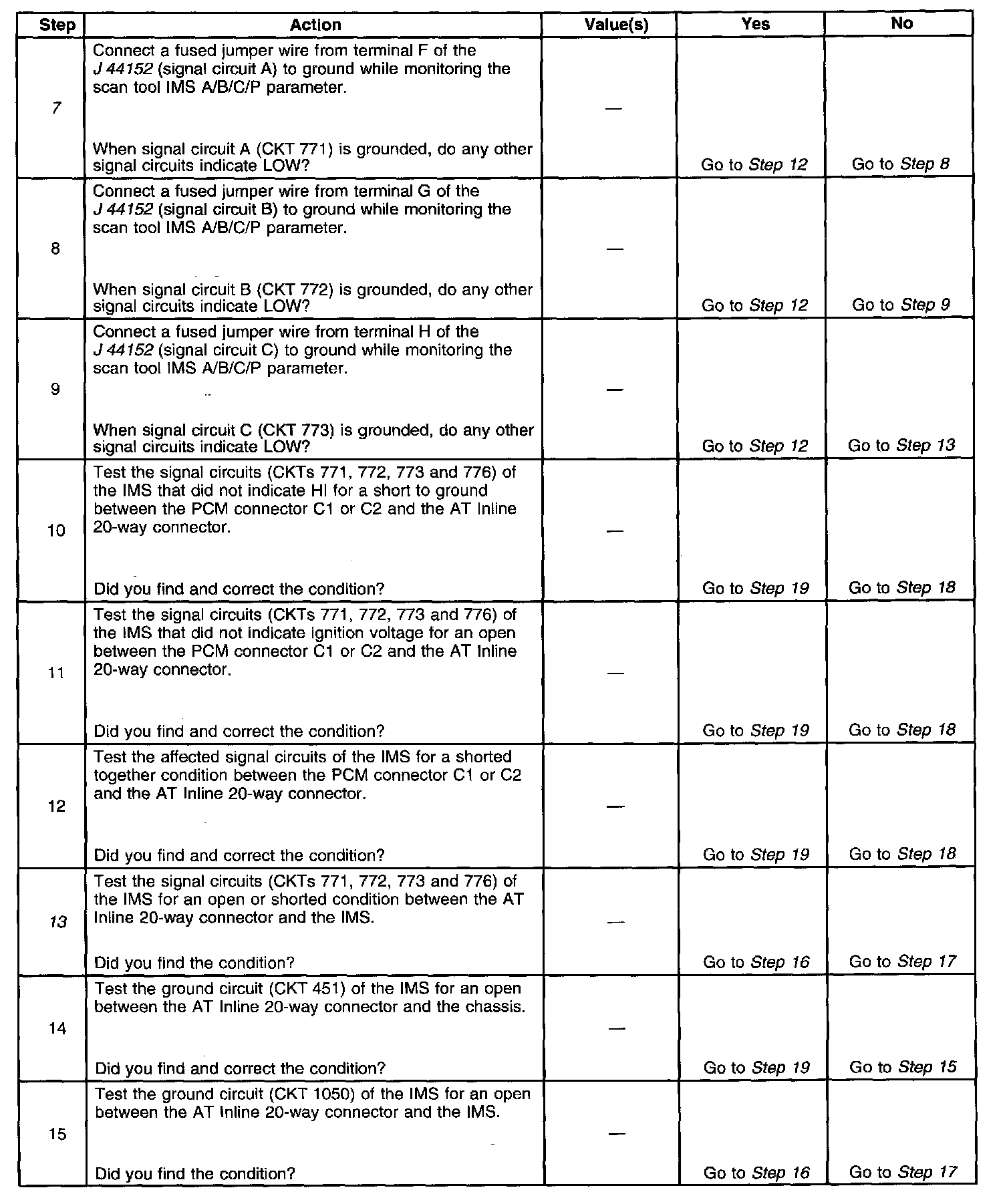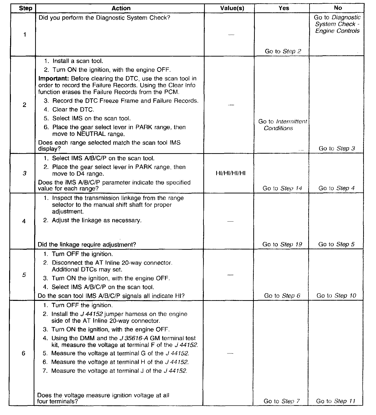 13. This step tests the internal transmission harness. If no fault is found in the harness, the fault will be in the switch.