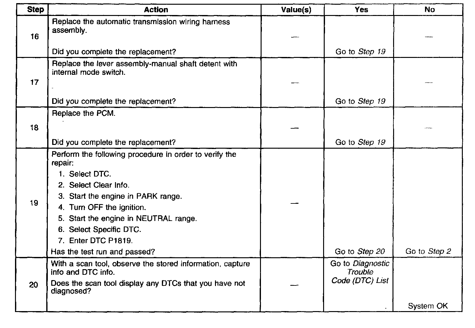 DTC P1819 Step 16 - 20: