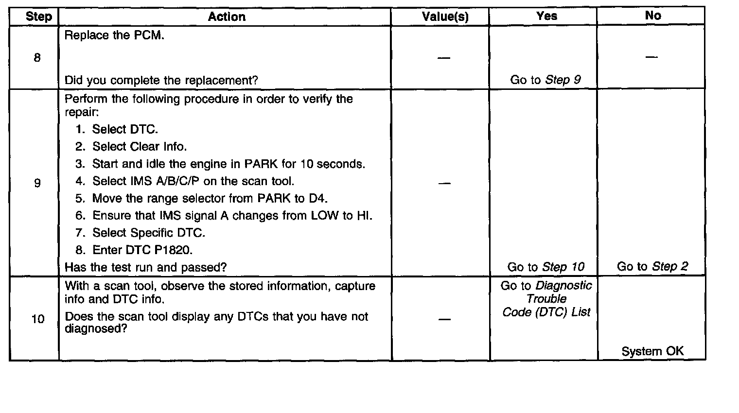 DTC P1820 Step 8 - 10: