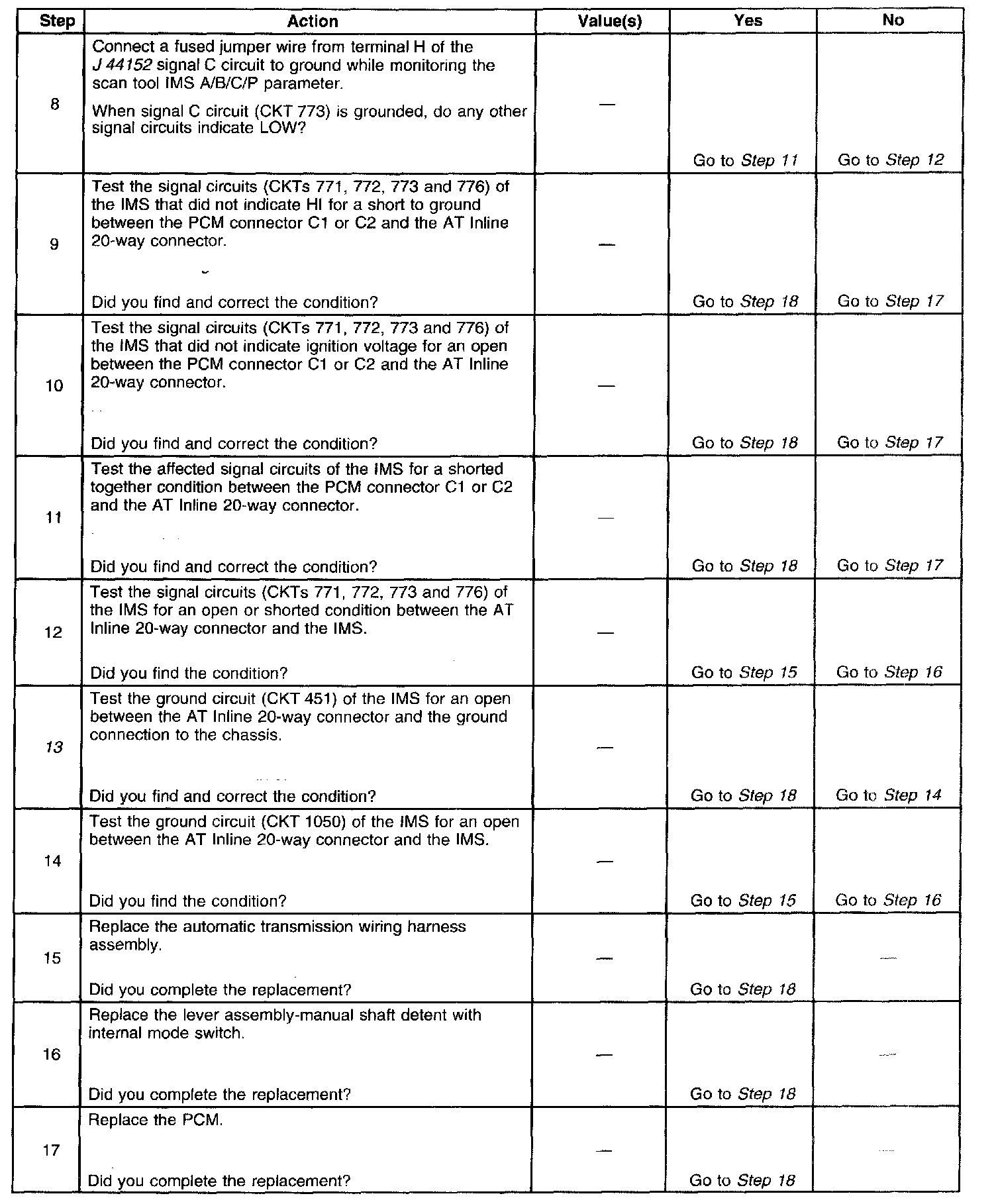 13. This step tests the internal transmission harness. If no fault is found in the harness, the fault will be in the switch.