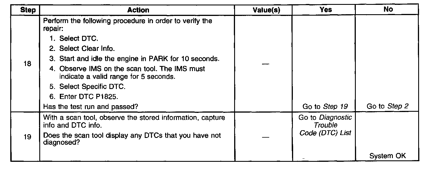 DTC P1825 Step 18 - 19:
