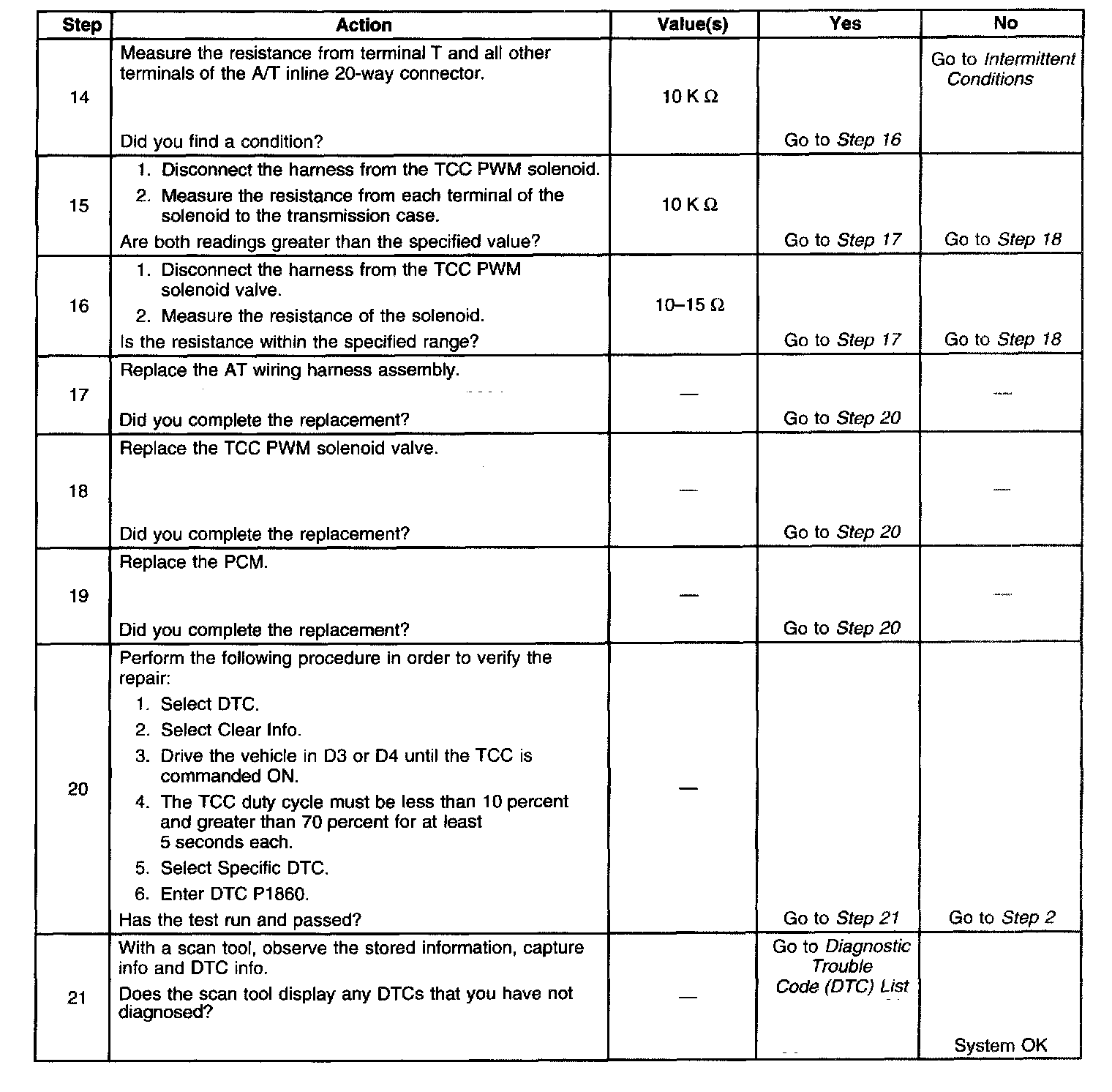 ^ The PCM stores DTC P1860 in PCM history during the second consecutive trip in which the Conditions for Setting the DTC are met.
