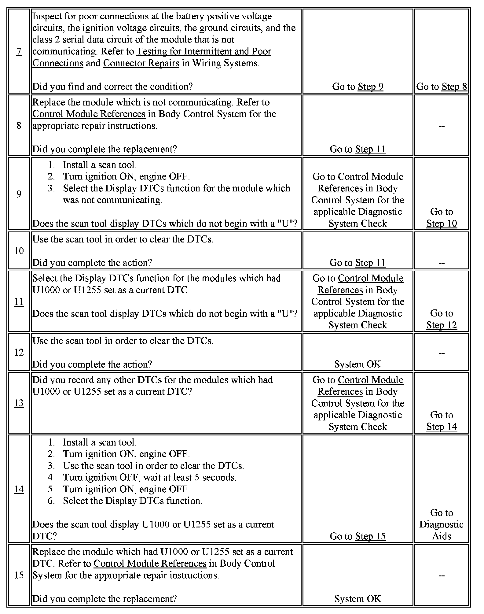11. The modules which can communicate indicate the module which cannot communicate. You must clear the DTC from these modules to avoid future misdiagnosis.